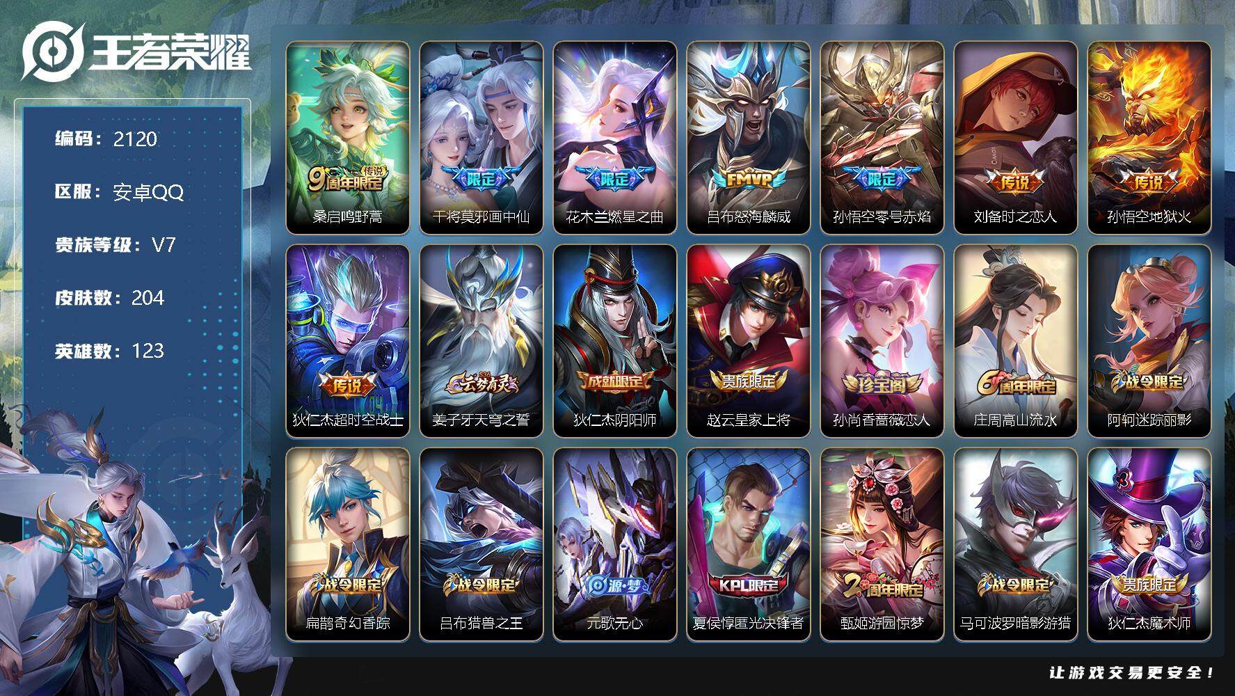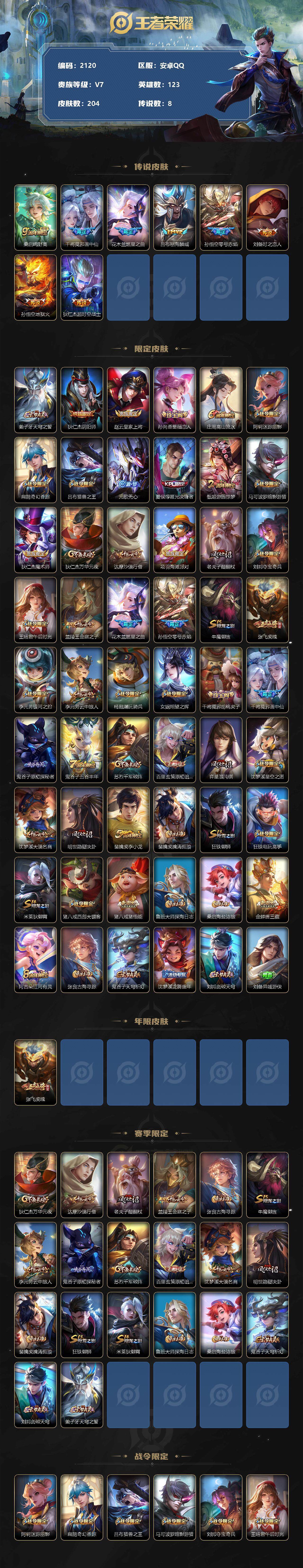 [12934919]安卓Q-V4-至尊星耀III段位-123英雄-204皮肤-0典藏-0珍品无双-0无双-0珍品传说-8传说-51史诗
