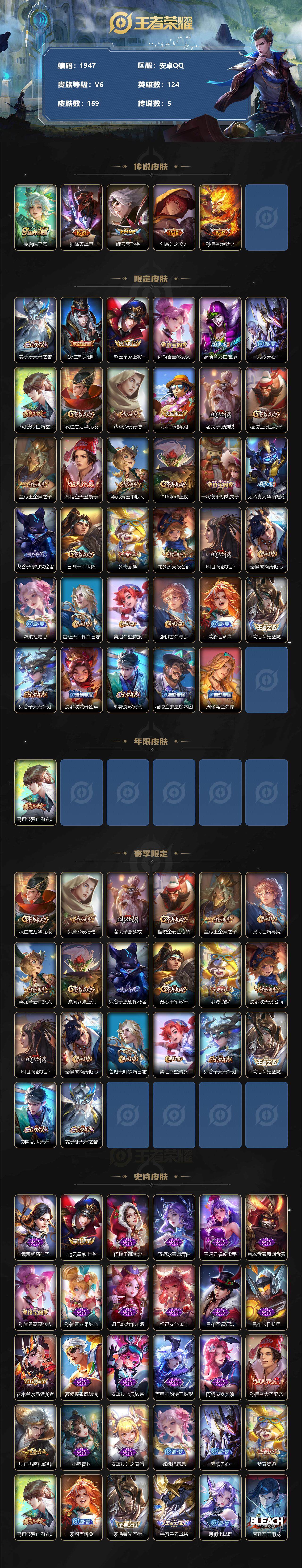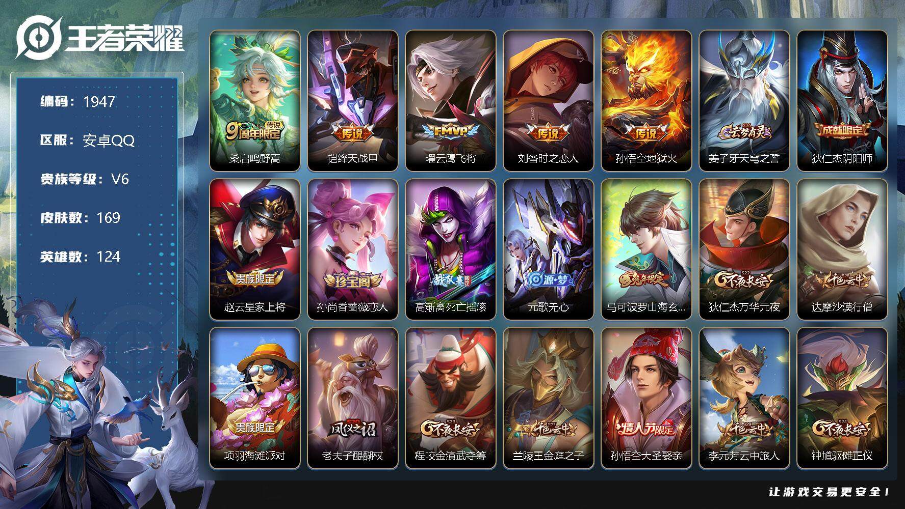 [12934972]安卓Q-V4-至尊星耀I段位-124英雄-169皮肤-0典藏-0珍品无双-0无双-0珍品传说-5传说-32史诗