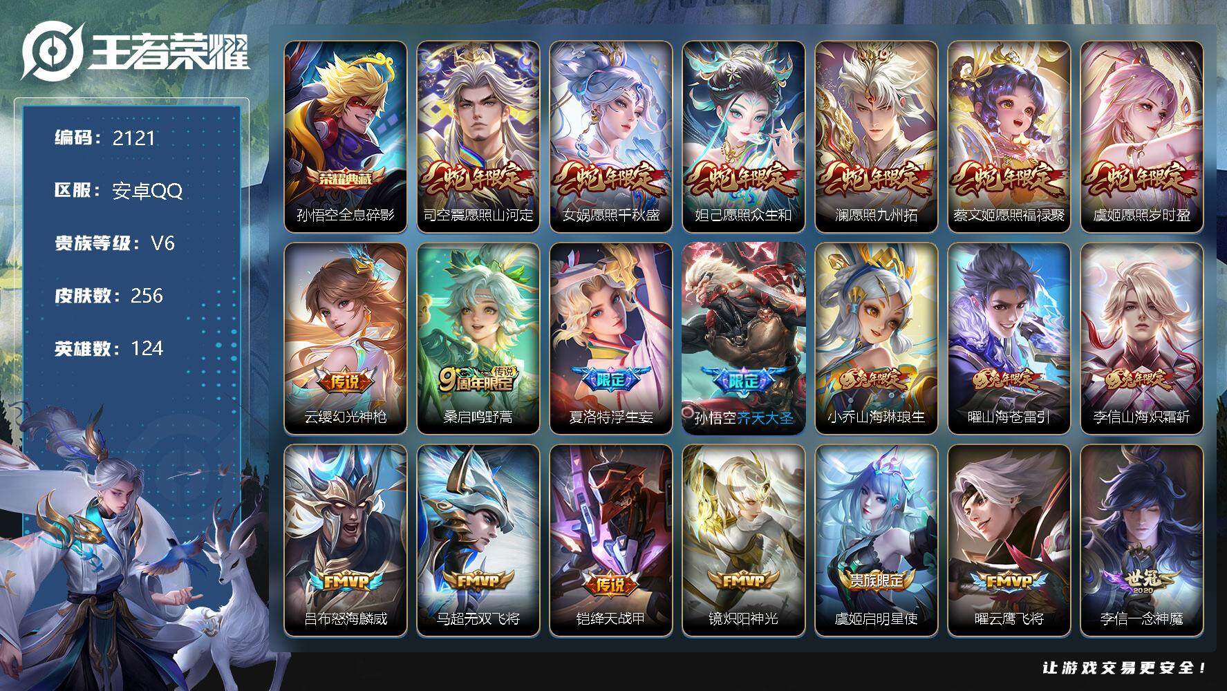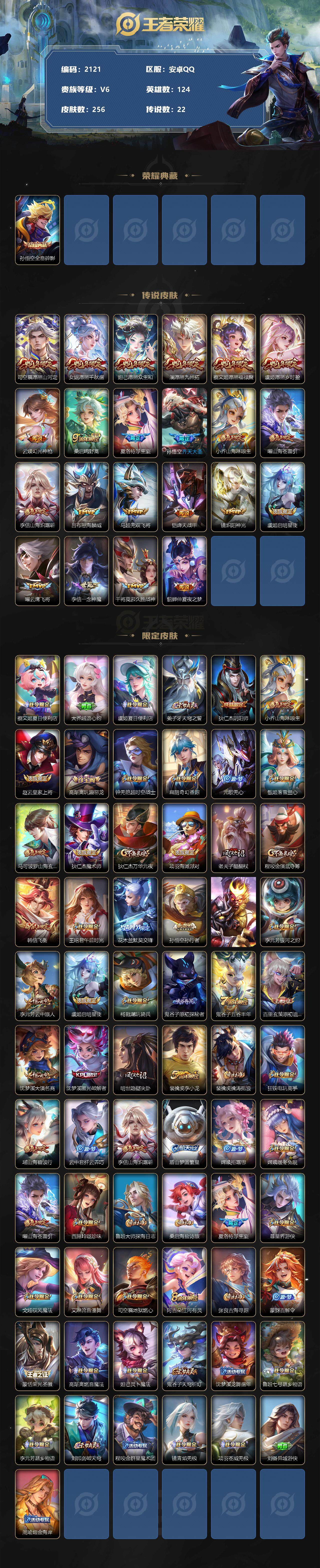 [12934948]安卓Q-V3-尊贵铂金IV段位-124英雄-256皮肤-1典藏-0珍品无双-0无双-0珍品传说-22传说-77史诗