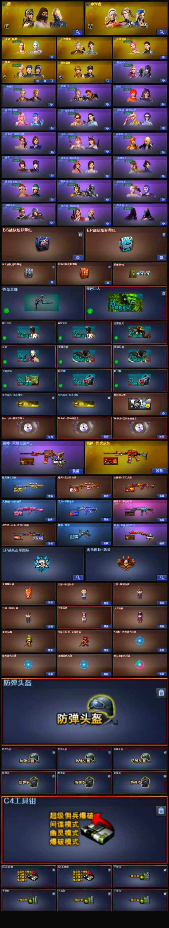 - [11554859]8粉装 9特效枪 9印记 可二次 可修改实名 女号 身法装备:暗影哥特(红眼罩) 优质装备:缤纷油彩(猪妹猪脸妹),M416暖熊萌萌,SCAR-L纯梦嫁纱,PKM江南烟雨,七级M416-暖熊萌萌,千金淑猫,AUG-暖羊咩咩,彩虹独角兽,樱桃泡泡,MK14-樱桃泡泡,幻彩电音,MG-36-幻彩电音,荧海星豚,蜜獾-荧海星豚,Kar98K-巳巳如意 热门装扮:暖熊萌萌,霓裳武神,动感兔斯基,潮萌小黄鸭,迅捷狂鲨,呆萌铁蟹,深海小丑鱼 稀有枪皮:DP-28-豹影疾电 五级特效枪:五级Kar98K-巳巳如意,五级蜜獾-荧海星豚,五级DP-28-豹影疾电,五级AUG-暖羊咩咩,五级SCAR-L-纯梦嫁纱,五级PKM-江南烟雨 四级特效枪:四级MG-36-幻彩电音 三级特效枪:三级MK14-樱桃泡泡 紫色装扮:田园牧歌,轻风白浪,和煦暖阳,SS22特训,SS23特训,幻彩翩翩,妙红点点,白兰地假日,娇憨猪猪,萌趣咩咩,SS21特训,SS31特训套装,冰川特警,霓虹热舞,极速光影,SS30特训套装,云朵鹅,彩虹兔,雪绒豹,乐游熊熊,SS33特训套装,顶瓜瓜,混沌火种,快乐星愿,SS13特训,SS14特训,SS19特训,粉团憨憨,软羊咩咩,吉莉礼服,长空猛禽,缤纷果语,耀眼新星,蓝色守护者,蓝海鲸歌,蜜露汐语,骑行爱好者,魅力单车,鹤鸣,黎明保卫者,龙的传人,柠萌假日,格斗先锋,海岛探路者,夏日音浪,王牌教练,潮流先锋,特殊使命,特训学院,SS28特训,异域银装,石蕴玉辉,鱼渊荷华,玉兔迎春,燕燕于飞,巳巳如意,熊抱抱,俏兔智灵,都市丽猫,青团波波,糖糖葫芦,竞技名士,绒宝小鹅,暗影哥特(红眼罩),小狗蛇点点,深海梦境,2P战斗服款,惊鸿侠骨,SS24特训(SS24特训套装),SS25特训,锦衣飞扬,智谋强哥,SS8特训,大橘大利,SS12特训,SS9特训,SS11特训,耀粉歌者,绒绒粉兔,粉恋花,蓝冰羽,紫幽梦,SS32特训服(SS32特训套装),瑰梦爱神,青玉碎影,绯格组合,萌黄之夏,Z.I.B特工,晨曦轻云,蜜桃派对,琉璃花蕾,恋语绒绒,雪夜云雾,果冻柠檬,弄潮海豚,光之冒险 优质战备:墨龙九天降落伞,莲影清波降落伞,闲梦青缨降落伞,萌物绒绒降落伞,绝色倾城降落伞,时光之吻降落伞,时光之誓飞行器,幻彩电音降落伞,冷漠罗丽降落伞,荧海星豚降落伞,月影灵韵降落伞,智耀战神降落伞