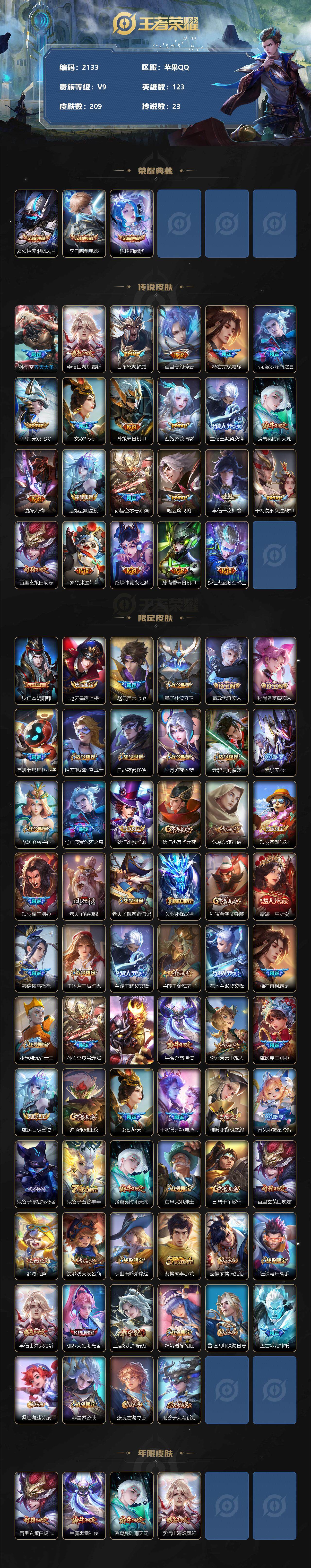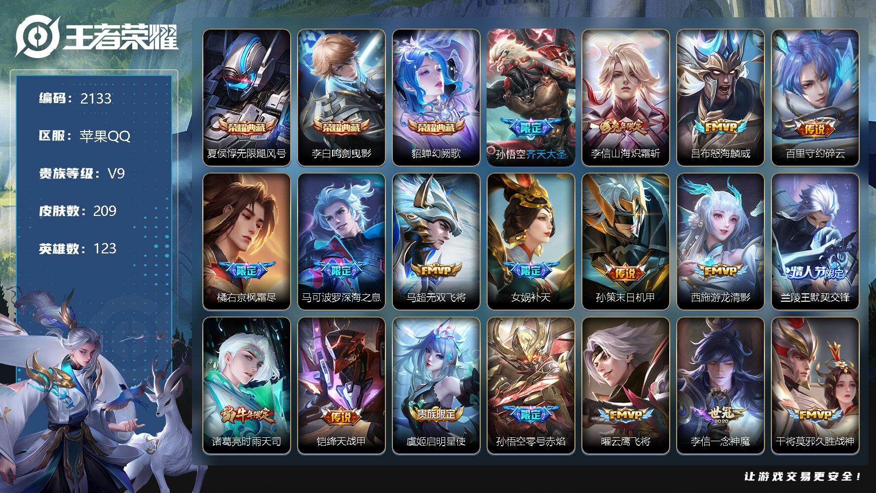 [12936235]苹果Q-V8-永恒钻石IV段位-123英雄-209皮肤-3典藏-0珍品无双-0无双-0珍品传说-23传说-74史诗