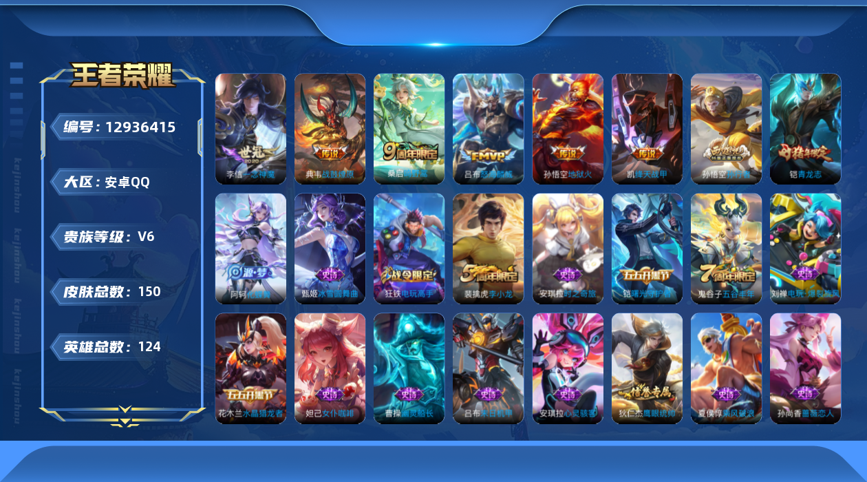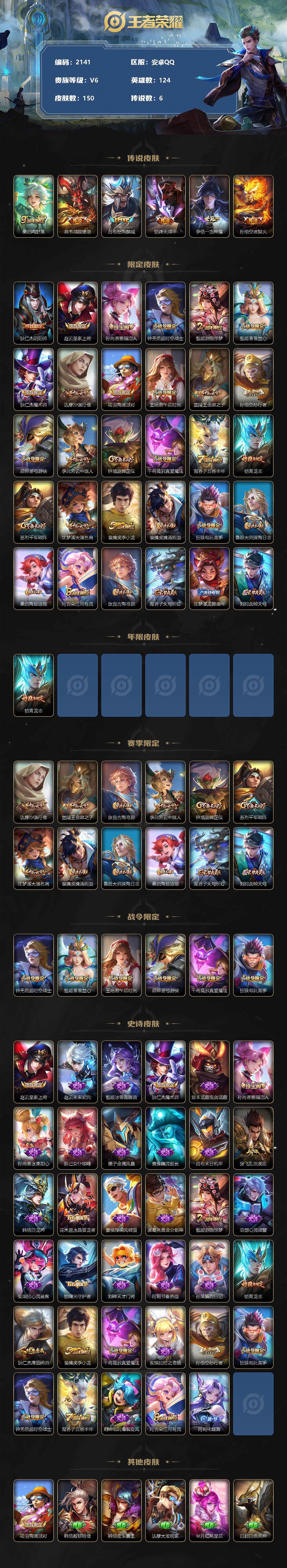 [12936415]安卓Q-V5-荣耀黄金II段位-124英雄-150皮肤-0典藏-0珍品无双-0无双-0珍品传说-6传说-35史诗