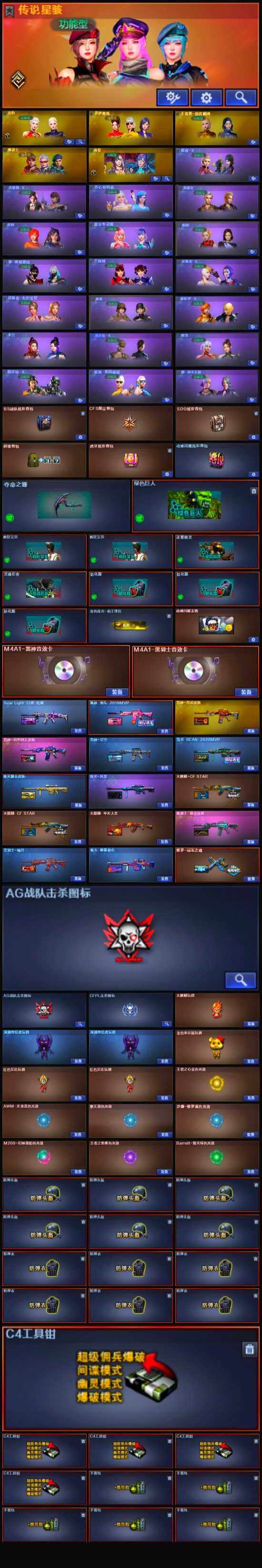 【英雄级武器】:AK47-火麒麟,M4A1-黑龙,M4A1-雷神,M4A1-黑骑士,AK47-无影,AK47-黑武士,无影-神兵利器,SCAR Light-玄豹,M4A1-猎神,烈火-动感闪耀,AK-47-猩红传说,黑骑士-海王*2,荣耀世冠-火麒麟,Barrett-毁灭,Barrett-极光,沙鹰-修罗*2,天神-动感闪耀,屠龙,龙啸,擎天,幻灵之锋,屠龙-动感闪耀,斩神刀-雷暴,手雷-动感闪耀