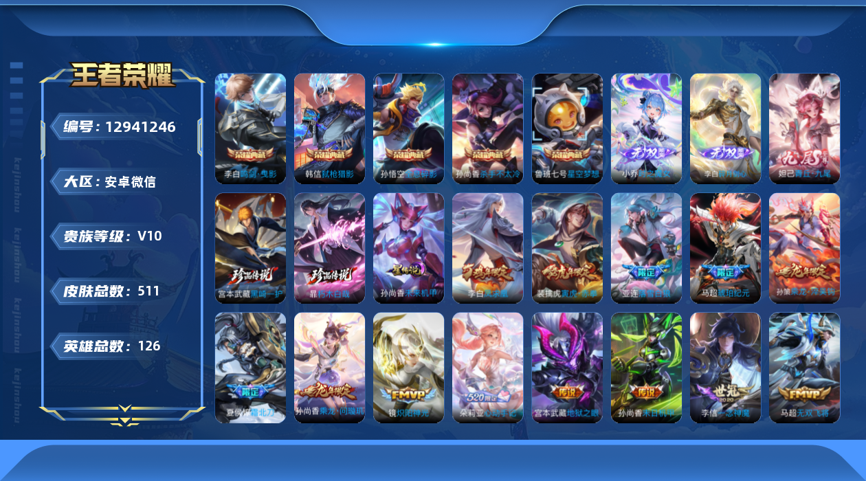 [12941246]AK814-有二次-安卓-V10-126英雄-511皮肤-6水-3无双-2珍品传说-46传说-190史诗