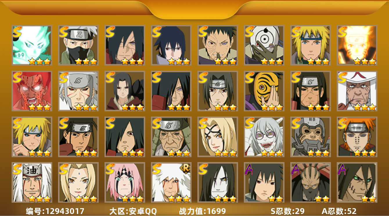 [12943017]V11/战力1699W/S忍29/A忍52
