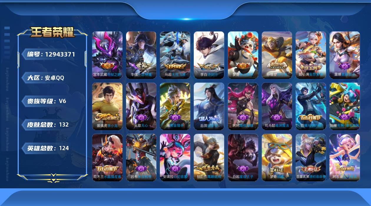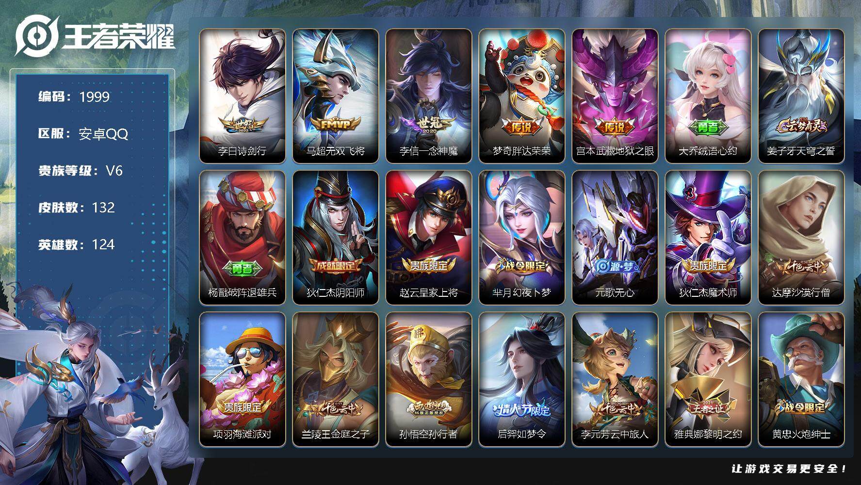 [12943371]安卓Q-V0-尊贵铂金IV段位-124英雄-132皮肤-0典藏-0珍品无双-0无双-0珍品传说-5传说-32史诗