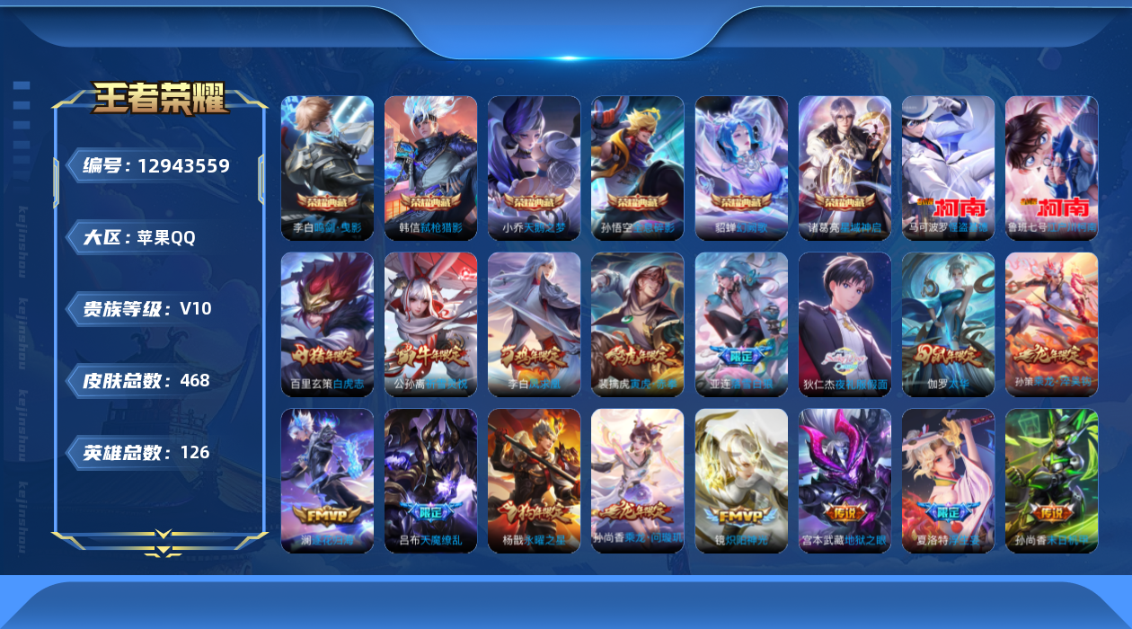 [12943559]暑期末清货/特价急出/永久包赔贵族10/皮肤467/典藏6/传说44/史诗164/英雄126 武则天英雄,孙悟空全息碎影,小乔天鹅之梦,李白鸣剑曳影,诸葛亮星域神启,貂蝉幻阙歌,韩信弑枪猎影,马可波罗怪盗基德,鲁班七号江户川柯南,狄仁杰超时空战士,武则天海洋之心,孙悟空地狱火,宫本武藏地狱之眼,孙尚香末日机甲,貂蝉仲夏夜之梦,后羿黄金射手座,梦奇胖达荣荣,花木兰冠军飞将,达摩黄金狮子座,虞姬云霓雀翎,刘备时之恋人,镜炽阳神光,马超无双飞将,宫本武藏惊梅引,孙膑小动物乐团,露娜霜月吟,澜逐花归海,狄仁杰阴阳师,孙尚香异界灵契,高渐离死亡摇滚,高渐离玩趣恶龙,吕布天魔缭乱,项羽海滩派对,兰陵王影龙天霄,花木兰默契交锋,虞姬启明星使,诸葛亮武陵仙君,苏烈千军破阵,孙策挚爱之约,夏洛特浮生妄,王昭君永恒水手月亮,狄仁杰夜礼服假面,艾琳觅芳踪,吕布曦玄引,亚连落雪白狼,关羽决胜骁骑,百里玄策白虎志,孙悟空美猴王,裴擒虎寅虎赤拳,鲁班七号寅虎瑞焰,李白凤求凰,杨戬永曜之星,公孙离祈雪灵祝,诸葛亮时雨天司,伽罗太华,马超神威,孙尚香乘龙问璇玑,孙策乘龙淬吴钩,庄周蜃楼王,孙膑妖精王,扁鹊炼金王,芈月重明,夏侯惇朔风刀,曹操烛龙,典韦穷奇,狄仁杰万华元夜,达摩沙漠行僧,老夫子醍醐杖,程咬金演武夺筹,兰陵王金庭之子,张良古海寻踪,亚瑟狮心王,牛魔御旌,李元芳云中旅人,虞姬凯尔特女王,钟馗驱傩正仪,太乙真人饕餮,鬼谷子原初探秘者,弈星混沌棋,沈梦溪大漠名商,明世隐疑决卦,裴擒虎擒涛扼浪,狂铁御狮,米莱狄御霄,盾山御銮,鲁班大师探海日志,桑启海盐诗旅,鬼谷子天穹祈灯,刘邦剑破天穹,墨子神迹守卫,白起夜都怪侠,芈月幻夜卜梦,吕布猎兽之王,周瑜赤莲之焰,甄姬落雪兰心,达摩星际陆战队,刘邦夺宝奇兵,王昭君午后时光,艾琳流音漫舞,亚瑟潮玩骑士王,后羿圣弓游侠,钟馗神迹守卫,杨戬潮玩骑兵,女娲朔望之晖,雅典娜单词大作战,沈梦溪星空之诺,猪八戒西部大镖客,嫦娥暖冬兔眠,西施玲珑珍味,镜青焰无极,项羽苍威无极,鲁班七号电玩小子,项羽职棒王牌,项羽苍穹之光,露娜紫霞仙子,阿轲暗夜猫娘,钟无艳王者之锤,赵云嘻哈天王,赵云皇家上将,赵云未来纪元,貂蝉圣诞恋歌,甄姬冰雪圆舞曲,王昭君偶像歌手,狄仁杰魔术师,廉颇地狱岩魂,宫本武藏鬼剑武藏,孙尚香蔷薇恋人,孙尚香水果甜心,嬴政优雅恋人,嬴政暗夜贵公子,嬴政摇滚