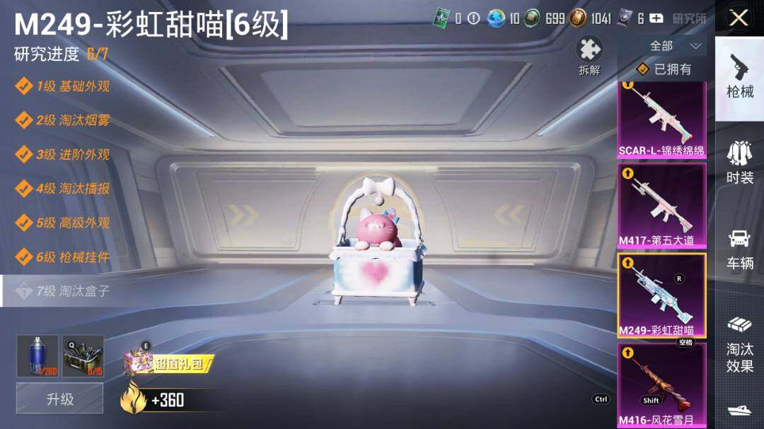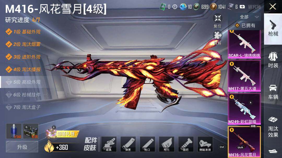 M416-风花雪月,Kar98K-创世·救赎,Kar98K-巳巳如意,Kar98K-圣域龙灵,M417-第五大道,M249-彩虹甜喵