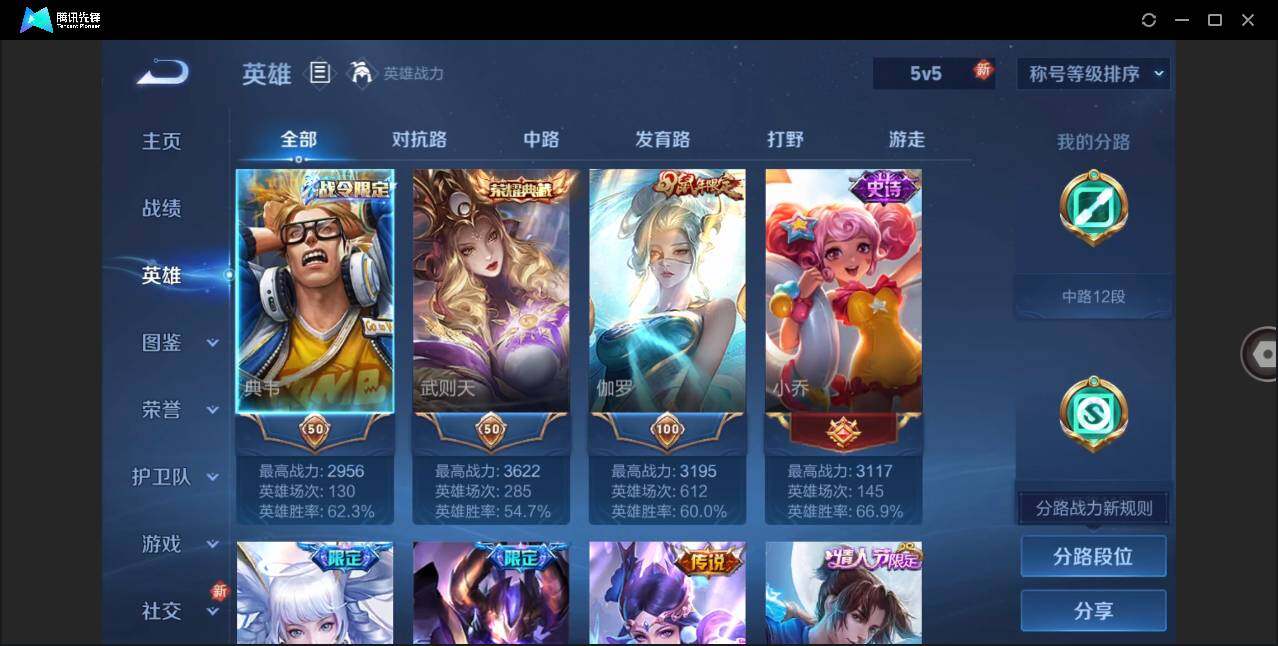 - [11496773]武则天,久胜,紫霞,-可二次-123英雄-232皮肤-7传说-62史诗 凤求凰-李白 冰锋战神-关羽 女武神-艾琳 街头霸王-韩信
