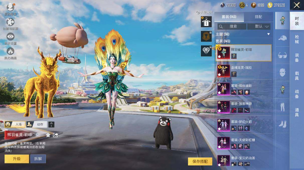 AKM-甜心宝贝,AKM-星际浪客,SCAR-L-童趣迷兔,SCAR-L-青春物语,SCAR-L-金蛇镇世,M416-五爪金龙,M416-心之恋语,GROZA-旋转彩虹,AUG-妙趣可丽,UMP45-恐龙拽拽,Kar98K-巳巳如意,Kar98K-圣域龙灵,AWM-花间之火,MG3-洛神天依