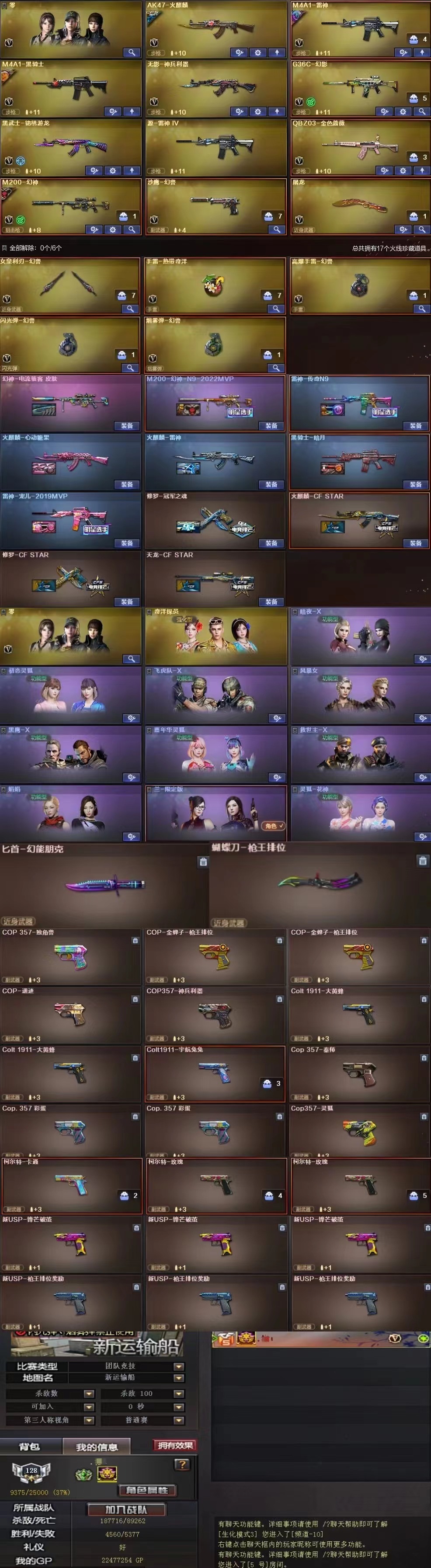 [12945154]北部17V有二次 幻神-N9-骇客双皮 幻兽雷套(绝版比赛专用)幻兽沙鹰 幻神女皇丽刃 G36C幻影 QBZ蔷薇 雷神N9-宠儿双皮 黑骑士暗月 火麒麟三皮 人物葵奇异探员 匕首幻能朋克 蝴蝶刀-枪王排位 会5