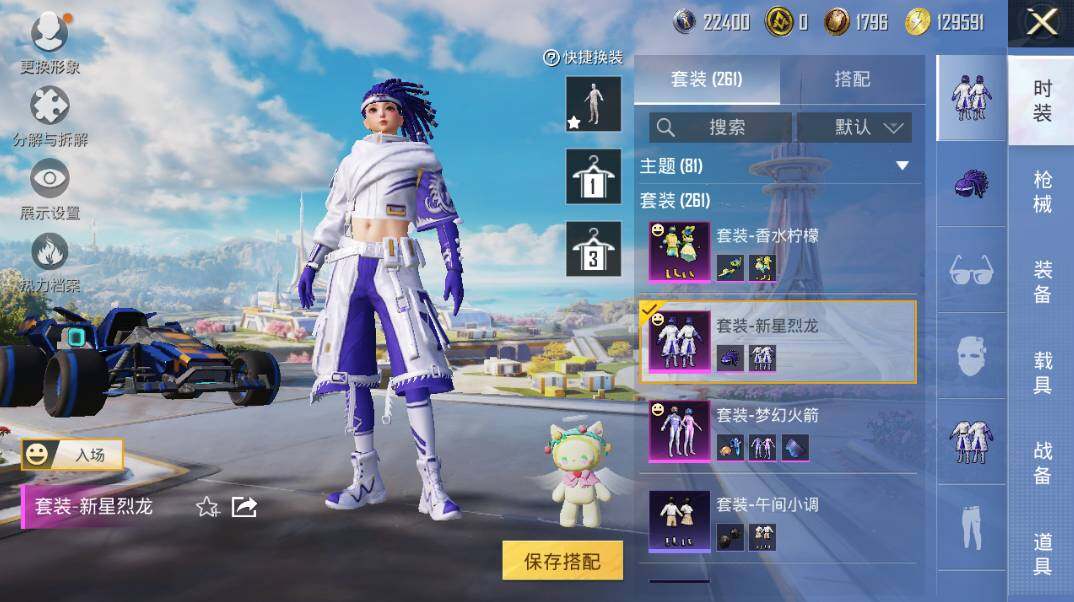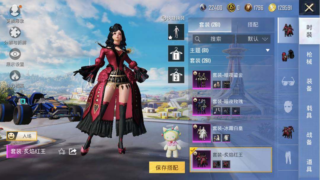 【粉色套装】:粉装-梦幻火箭,粉装-新星烈龙,粉装-冰霜白皇,粉装-炙焰红王,粉装-香水柠檬,粉装-暗夜玫瑰,粉装-暗夜鎏金,粉装-第五大道,角色-圣堂之誓,角色-烟云彩露,角色-樱桃泡泡,粉装-星穹咏叹调,角色-羊梦糖心