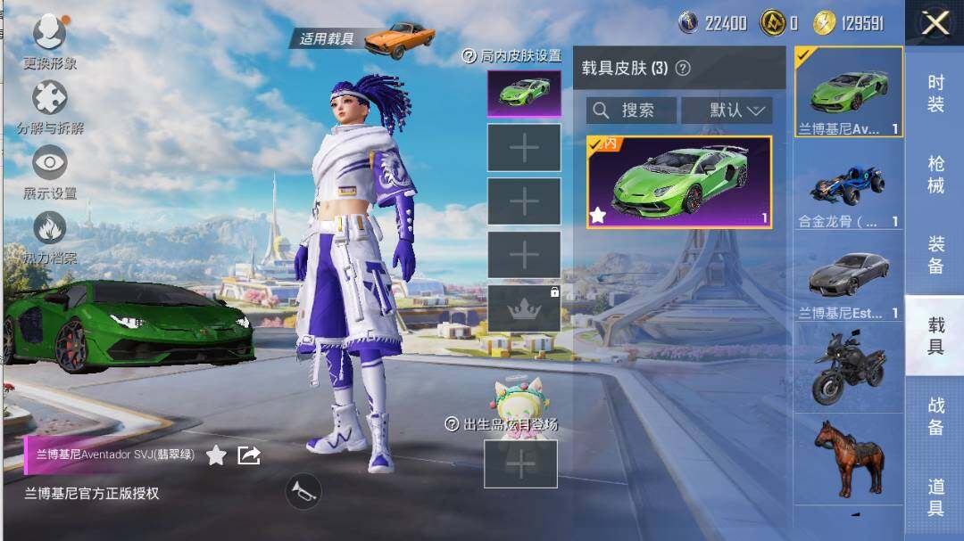 【粉色载具】:兰博基尼Aventador SVJ(翡翠绿),兰博基尼Estoque(银翼灰),合金龙骨(蓝)