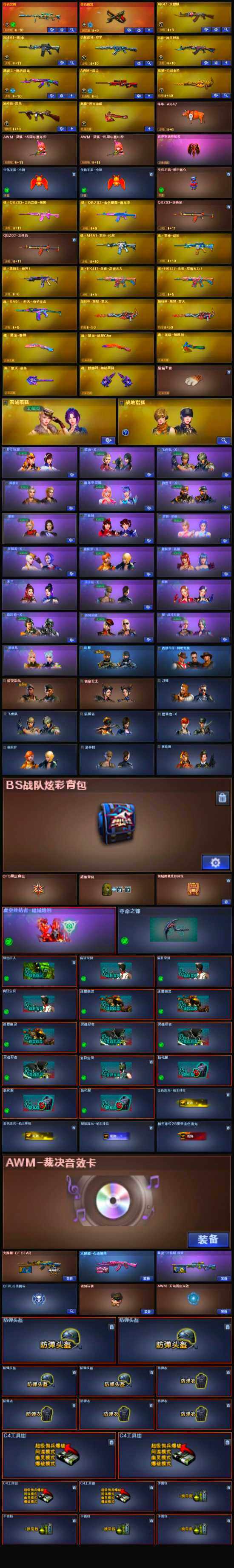 【英雄级武器】:无影-神兵利器,M4A1-雷神,汤姆逊-烈龙,AK47-火麒麟,AWM-裁决,黑武士-锦绣游龙,死神-雪域霜狐,AWM-昌龙,M4A1-赤狱骑士