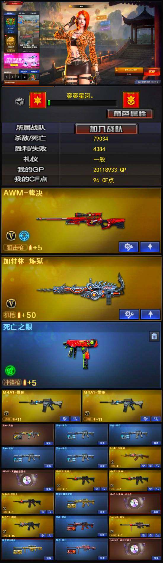 【热门武器】:金色蔷薇-古蛇迷踪,修罗-古蛇迷踪,死亡之眼,M4A1-黑骑士*3,加特林-炼狱,火麒麟-绝迹,沙鹰-修罗*8