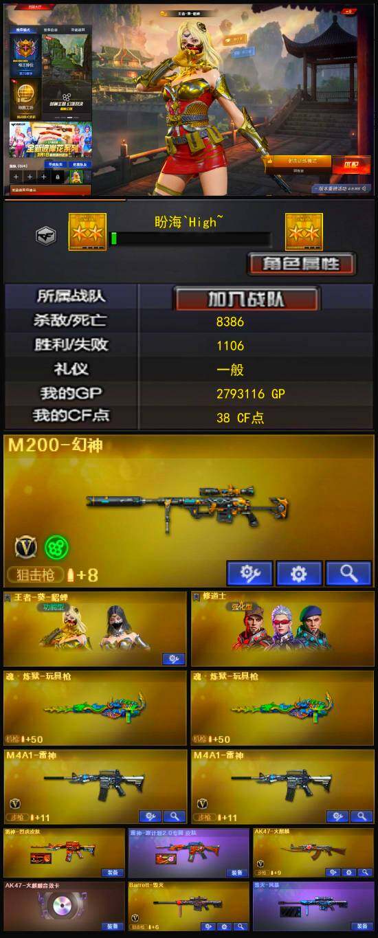- [12580099]【238】76V/92级/将帅/2传说/45王者/2炫金/1英雄/传说暗裔/传说女帝/QBZ03-金色蔷薇/HK417-朱雀/M200-幻神/火麒麟-荣耀世冠/雷神-荣耀世冠/柯尔特-荣耀世冠/Kar98k-星神/M4A1-黑骑士/汤姆逊-烈龙/加特林-炼狱/斯泰尔蝴蝶/雷神-小红/COP 357-幻灵/沙鹰-修罗/炽芒蝶刃/龙啸-荣耀世冠/黄金猫猫手套-白鲨/金刚伞/蝴蝶斯泰尔+6烈龙/炫金天龙/炫金超新星/王者冰魄/王者之戮/王者之怒/王者之力/王者之心/王者雷怒/Barrett-雷霆王者/王者之锋/M200-幻神音效卡/M4A1-雷神音效卡/M4A1-黑骑士音效卡/Barrett-毁灭音效卡/Barrett-极光音效卡/幻神周瑜/幻神冠军之幻/幻神-宠儿/星神-巅峰荣耀/白虎-巅峰荣耀/雷神荣耀之魄/雷神-耀金皮肤/雷神-传奇N9/雷神-宠儿-2019MVP/雷神-R.LGD-CFPLS18冠军/雷神-荣耀世冠AG/火麒麟-冠军之心/火麒麟-华夏之心/AK47-火麒麟-传奇EVEN/火麒麟-平天大圣/火麒麟-百城/黑骑士-暗月/黑骑士-战神马超/黑骑士-伏羲/黑骑士-AG-S4冠军典藏/毁灭-暗月/毁灭-荣耀之怒/毁灭-星空/毁灭-BEAN-2020MVP/毁灭-黑大圣皮肤/AWM-天龙-传奇70KG/AWM-天龙-传奇白鲨/无影耀金皮肤/修罗耀金皮肤/修罗-星空/屠龙-荣耀之锋/屠龙-春桃/擎天-冠军之击/王者-瞳-闭月羞花/王者-葵-貂蝉/王者-魅影/灵狐者-职业经理/幽/晴雅/职业选手/甜心偶像/火麒麟-灵狐/AWM-灵狐-15周年嘉年华/闪光弹-小乔/闪光弹-貂蝉/高爆手雷-大乔/超级对讲机/6烈龙/机甲撕裂者/神圣爆裂者-末日/激光毁灭者/幻灵之锋/麒麟刺-堕天神/荣耀世冠-火麒麟/荣耀世冠-柯尔特/荣耀世冠-龙啸/无影-神兵利器/M4A1-雷神/M4A1-黑龙/AK47-无影/AK47-火麒麟/AK12-天启/AN94-超新星/Barrett-毁灭/Barrett-极光/AWM-裁决/M4A1-龙血/AK47-黑鲨/黑骑士-海王/AK47-B-常胜将军/USP-冥王/沙鹰-天神/擎天/屠龙