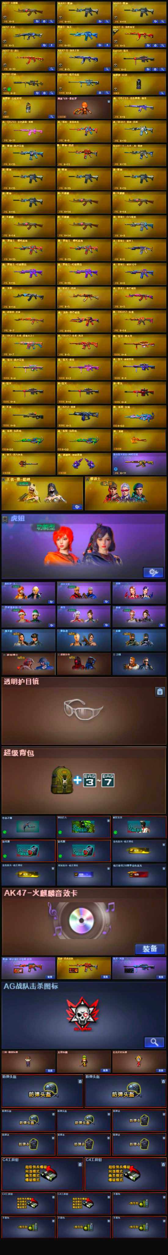 【英雄级武器】:M4A1-雷神*2,AK47-火麒麟,AK12-天启,Barrett-毁灭,M200-幻神,黑骑士-海王,AK47-B-常胜将军