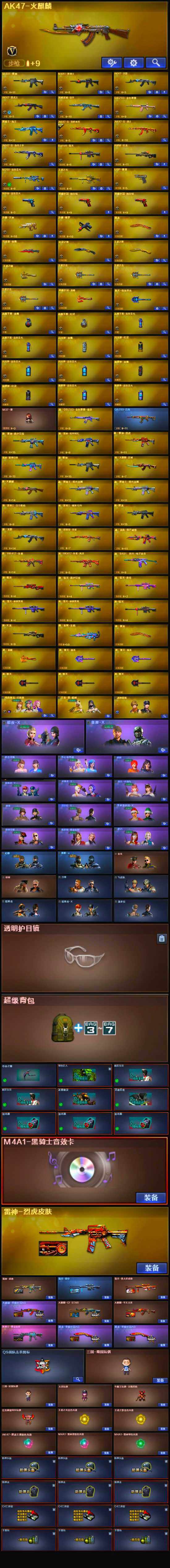 【英雄级武器】:M200-竞技荣光,柯尔特-竞技荣光,擎天-竞技荣光,高爆手雷-竞技荣光*2,烟雾弹-竞技荣光*2,闪光弹-竞技荣光*2,幻灵之锋,马来剑-夜魔,USP-雷暴,荣耀世冠-柯尔特*2,荣耀世冠-龙啸,QBZ03-金色蔷薇,M4A1-雷神,M4A1-黑骑士,AK47-无影,AK47-火麒麟,AK47-黑武士,AWM-天龙,Barrett-毁灭,黑骑士-海王,AK47-B-常胜将军,M4A1-赤狱骑士,沙鹰-天神,沙鹰-修罗,屠龙