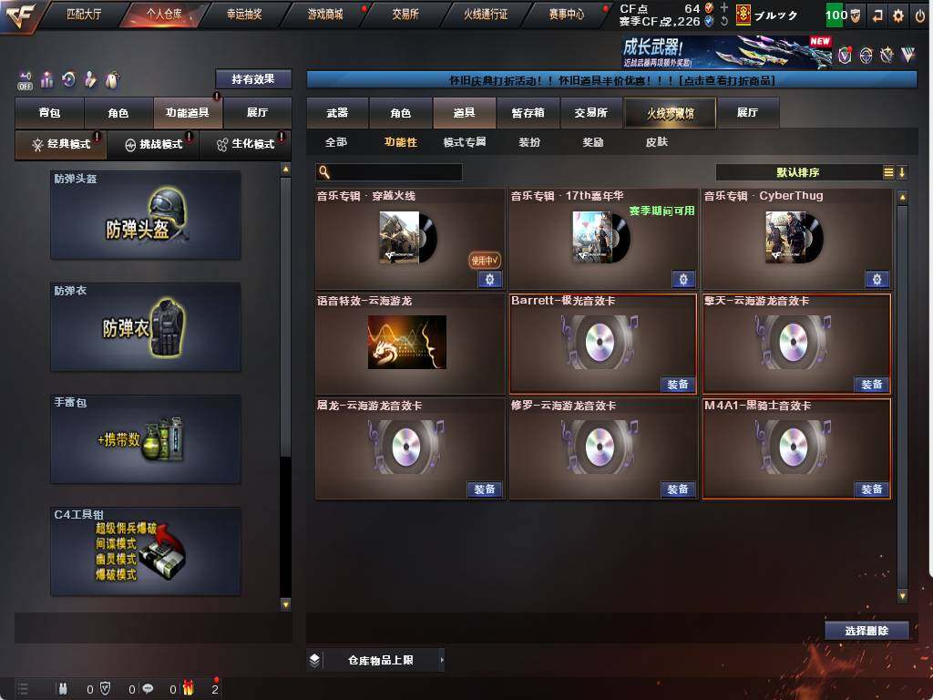 【音效卡】:修罗-云海游龙音效卡,擎天-云海游龙音效卡,屠龙-云海游龙音效卡,M4A1-黑骑士音效卡,Barrett-极光音效卡