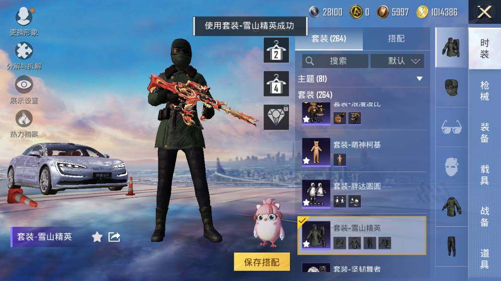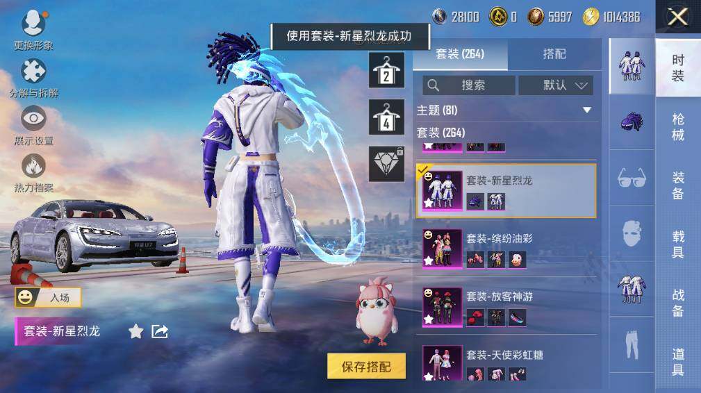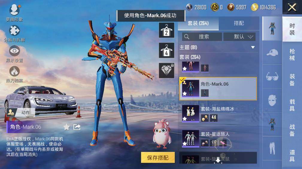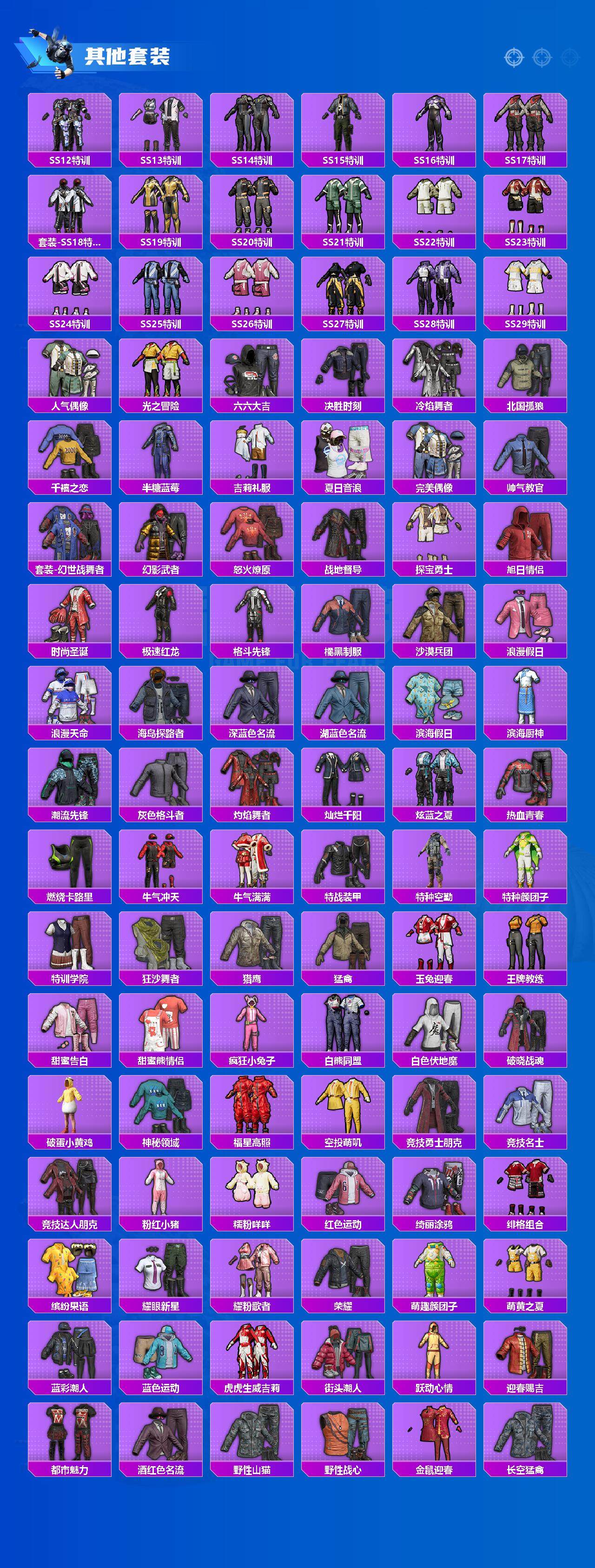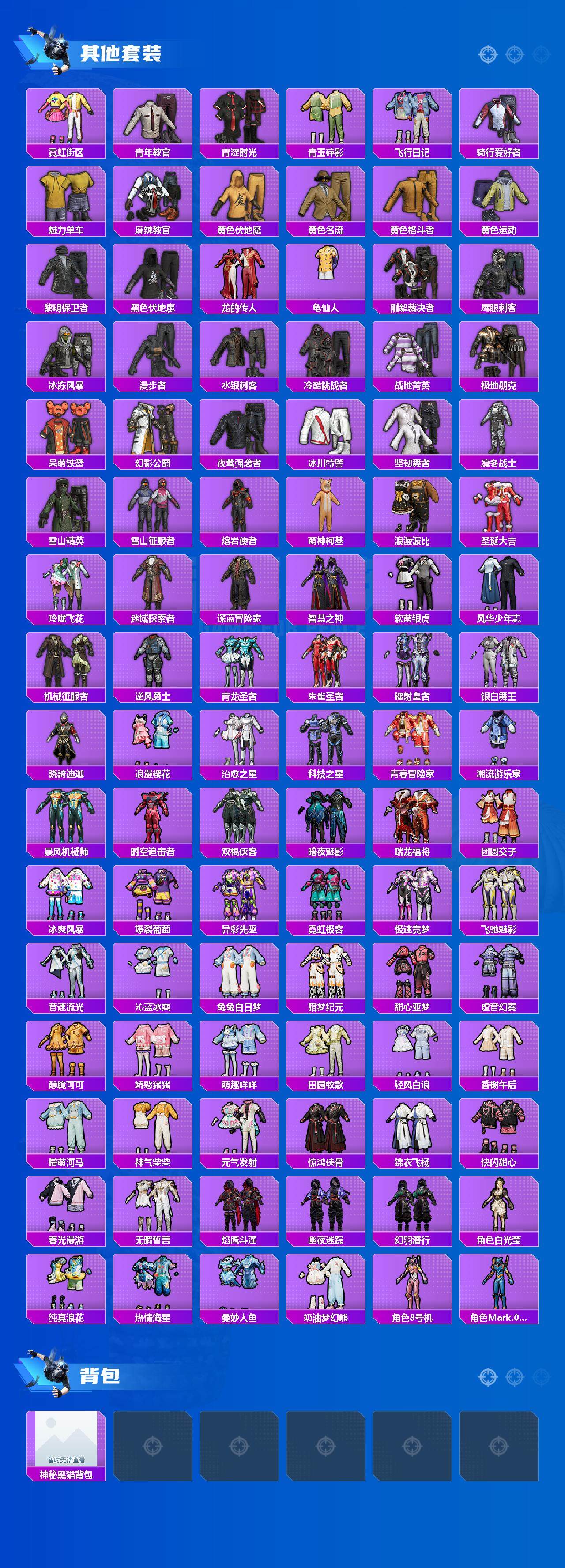 套装-浪漫天命,套装-龟仙人,套装-粉红小猪,角色-8号机,角色-Mark.06,套装-极速红龙,套装-狂沙舞者,套装-破蛋小黄鸡,套装-漫步者,套装-水银刺客,套装-雪山精英,风华少年志套装,套装-青龙圣者,套装-朱雀圣者,套装-瑞龙福将,套装-团圆交子