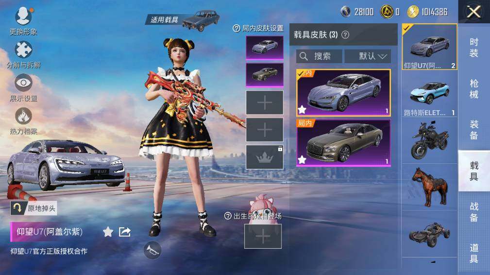 【粉色载具】:路特斯ELETRE(冰川蓝),宾利飞驰(布罗德盖棕双色),仰望U7(阿盖尔紫)