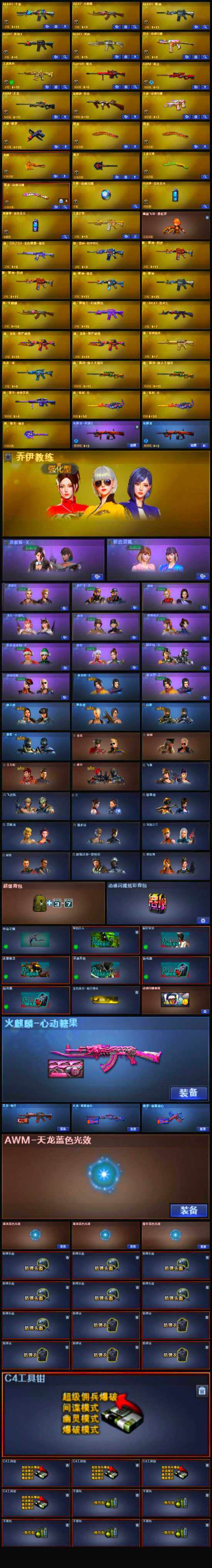 【英雄级武器】:烟雾弹-竞技荣光,闪光弹-竞技荣光,烈火-动感闪耀,天神-动感闪耀,屠龙-动感闪耀,手雷-动感闪耀,M4A1-雷神,M4A1-黑骑士,M4A1-死神,汤姆逊-烈龙,AK47-火麒麟,AWM-天龙,Barrett-极光,AWM-裁决,M4A1-千变,AK-47-猩红传说,沙鹰-修罗,擎天,龙啸,屠龙*2