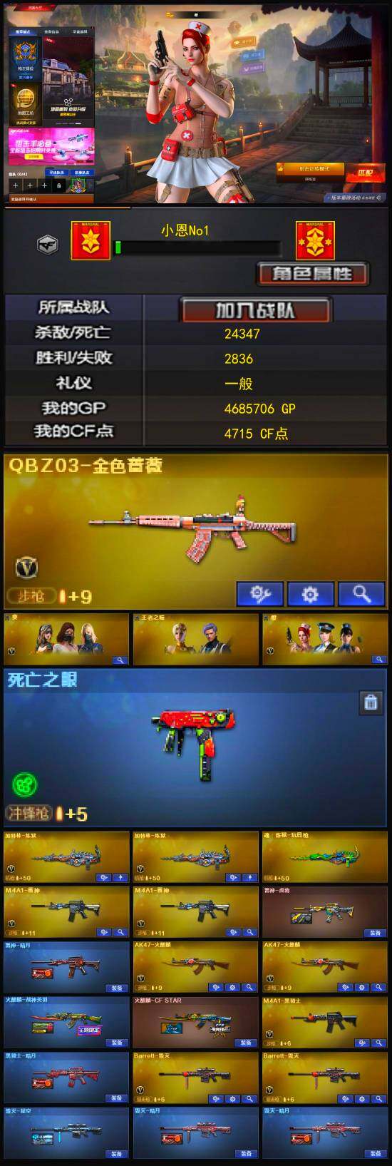 【热门武器】:QBZ03-金色蔷薇,死亡之眼,M4A1-黑骑士,加特林-炼狱*2,沙鹰-修罗*3