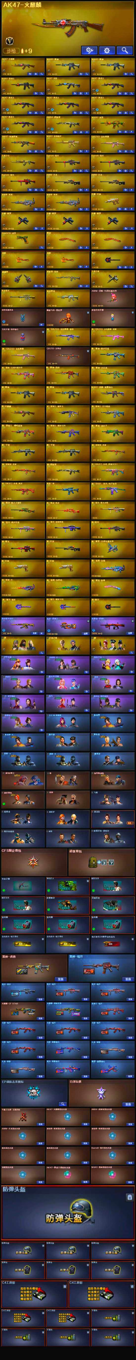 【英雄级武器】:M4A1-武圣,Glock18-武圣,QBZ03-金色蔷薇,M4A1-雷神*2,M4A1-玫瑰精灵,M4A1-黑骑士,加特林-炼狱*2,AK47-无影,AK47-火麒麟*2,AK47-黑武士*5,AN94-超新星,AWM-天龙*2,Barrett-毁灭*2,Barrett-极光,AK47-机械迷城,沙鹰-天神,沙鹰-修罗*3,麒麟刺,擎天,龙啸*2,屠龙*2