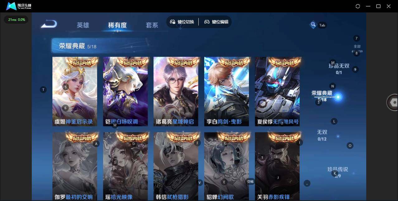 - PX_2096132-15 安卓QQ/无双王者/341皮肤/124英雄/1典藏/0珍品无双/0无双/4珍品传说/33传说/83史诗/8稀有英雄 【4 珍品传说】黑崎一护 宫本武藏,怪盗基德 马可波罗,时之奇旅 孙策,兔狲·蓬尾 张飞, 【1 典藏皮肤】银白咏叹调 铠, 【33 传说皮肤】启明星使 虞姬,逐花归海 澜,云鹰飞将 曜,齐天大圣 孙悟空,浮生妄 夏洛特,落雪白狼 亚连,惊梅引 宫本武藏,