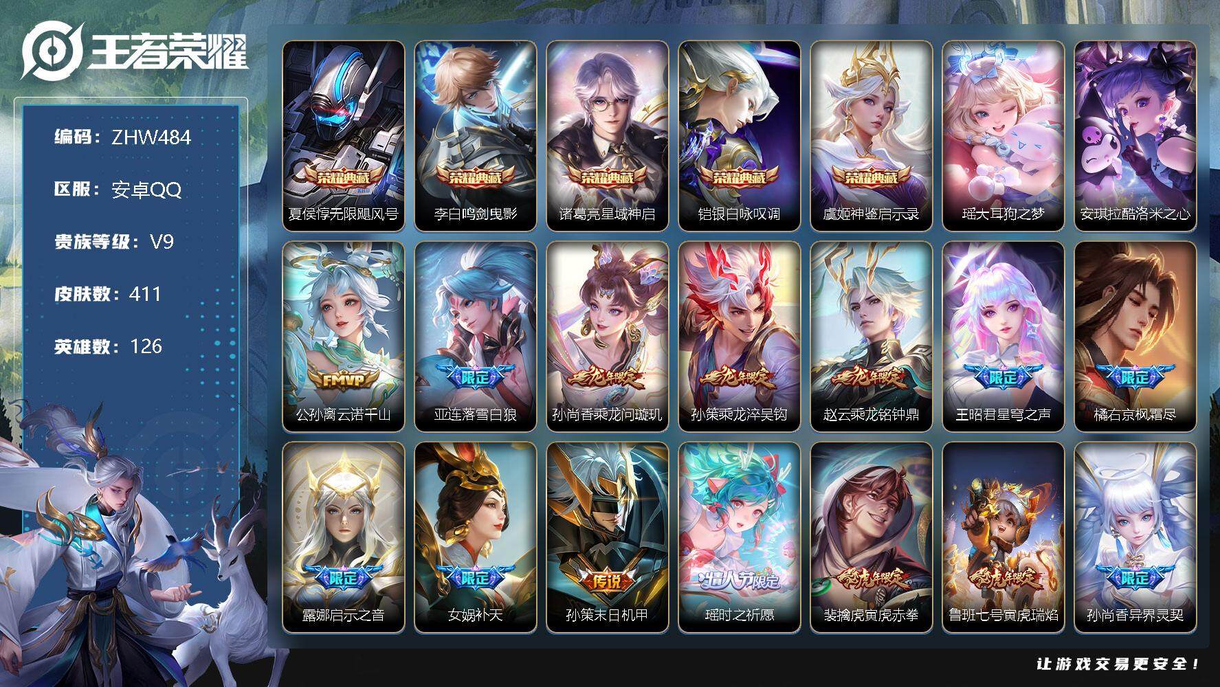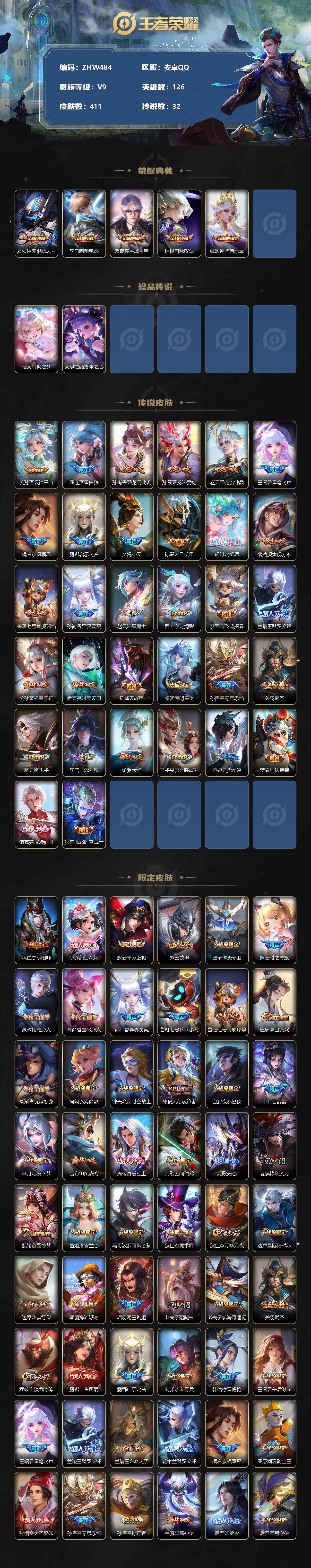 [12947453]【特价急出/详情看图】:安卓Q-V9-永恒钻石I段位-126英雄-411皮肤-5典藏-2珍品传说-32传说-138史诗