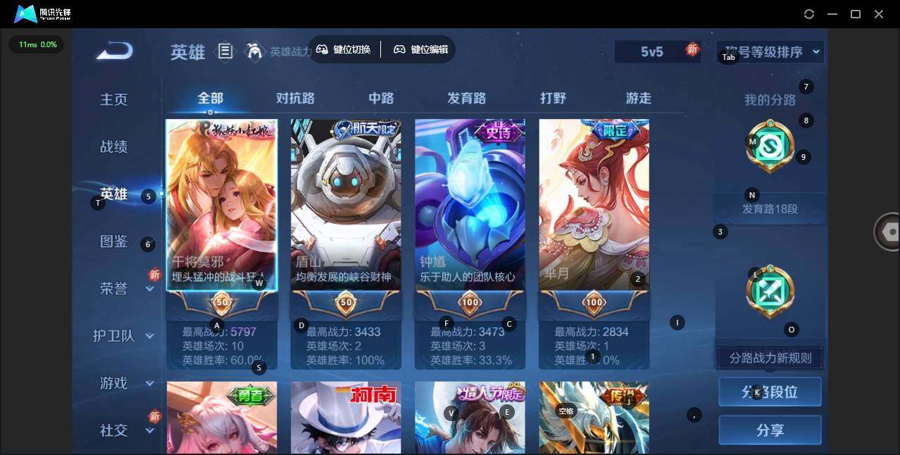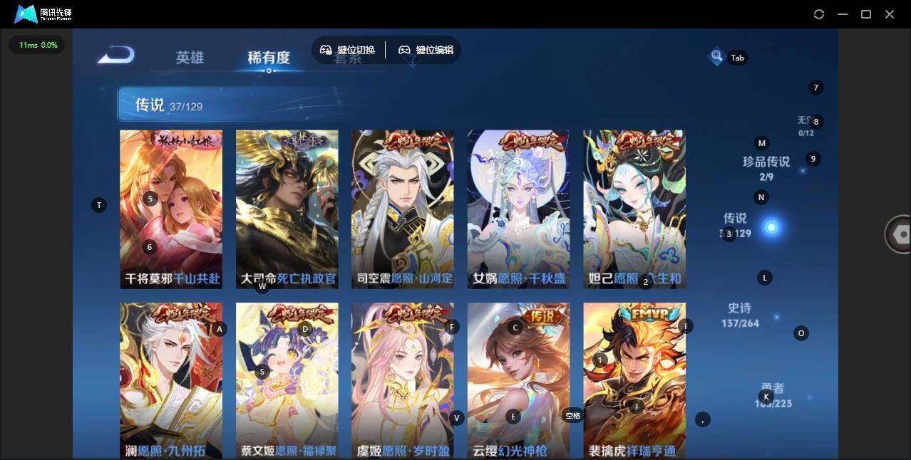 - [11884293]V5 4传说 106英雄 94皮肤 可修改实名 优质装备:绛天战甲(鸡嘴战神),云霓雀翎,地狱火 传说皮:典韦战鼓燎原 珍宝阁皮:胡桃夹子 史诗皮:鸭鸭历险记-刘禅,龙之律动,石田雨龙,戍鼓铭心,星界特工,百相守梦-黄忠,青蛇,乱世虎臣,摇滚巨星,水果甜心,鬼剑武藏,心灵战警,地狱岩魂,金属风暴,魅力维加斯
