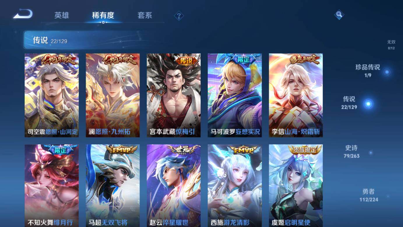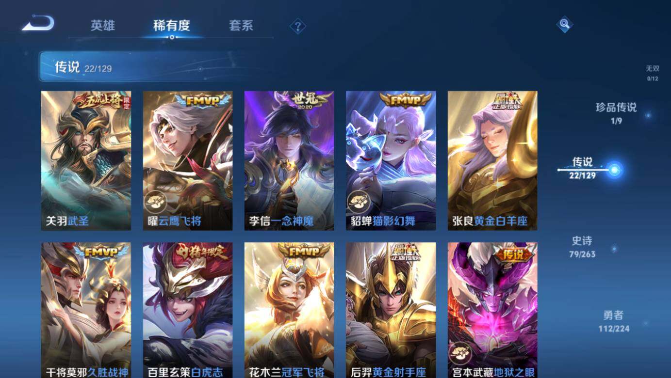 - PX_2101862-95 安卓微信/永恒钻石/223皮肤/124英雄/1典藏/0珍品无双/0无双/0珍品传说/14传说/64史诗/8稀有英雄 【1 典藏皮肤】星域神启 诸葛亮, 【14 传说皮肤】永恒水手月亮 王昭君,启明星使 虞姬,云霓雀翎 虞姬,电玩·雷克斯 澜,夜礼服假面 狄仁杰,追逃游戏 安琪拉,猫影幻舞 貂蝉,仲夏夜之梦 貂蝉,鹤羽星尊 诸葛亮,末日机甲 孙尚香,音你心动 小乔,至美·