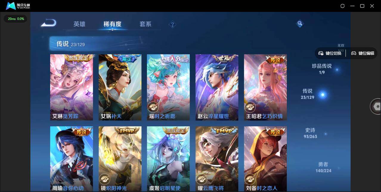 - [11884062]V7 1典藏 9传说 125英雄 235皮肤 可修改实名 优质装备:神鉴启示录,冠军飞将,炽阳神光,音你心动-小乔,胖达荣荣,大乔-时之奇旅 珍宝阁皮:蔷薇恋人,女武神 限定皮:凤凰于飞,星穹之声,白鹤梁神女,山海·碧波行(瑶年限),遇见飞天,诗剑行,无限倾心-虞姬,五谷丰年,梁祝,孙行者,乒乒小将,女儿国国王,时之祈愿-瑶(瑶传限),匿光启智者,时之奇旅-妲己,山海·玄木吟(马可年限) 史诗皮:化蝶舞,琥珀纪元伽罗,遇见神鹿,紫霞仙子,苍穹之光,黄金分割率,江河有灵,匿光侦查者,雪夜绮愿(周瑜),百解令(蒙犽),高渐离燃音魔法,蒙恬荣光圣徽,无限星赏官,匿光破解者,青蛇,晚萤,电玩·爆裂旋风,猫狗日记-孙策,时之恋人-孙尚香,乱世虎臣,女仆咖啡,水果甜心,天才门将,时之奇旅-安琪拉,功夫厨神,暗隐猎兽者,幽灵船长,鬼剑武藏,地狱岩魂,纤云弄巧,繁星吟游(呼啦呼啦),拒霜思,逐浪之夏,水晶猎龙者,曙光守护者,箭羽风息,金属风暴,圣诞狂欢,圣诞恋歌,鹰眼统帅,暗夜贵公子,魅力维加斯,奇遇舞章,天秀·音浪,无心