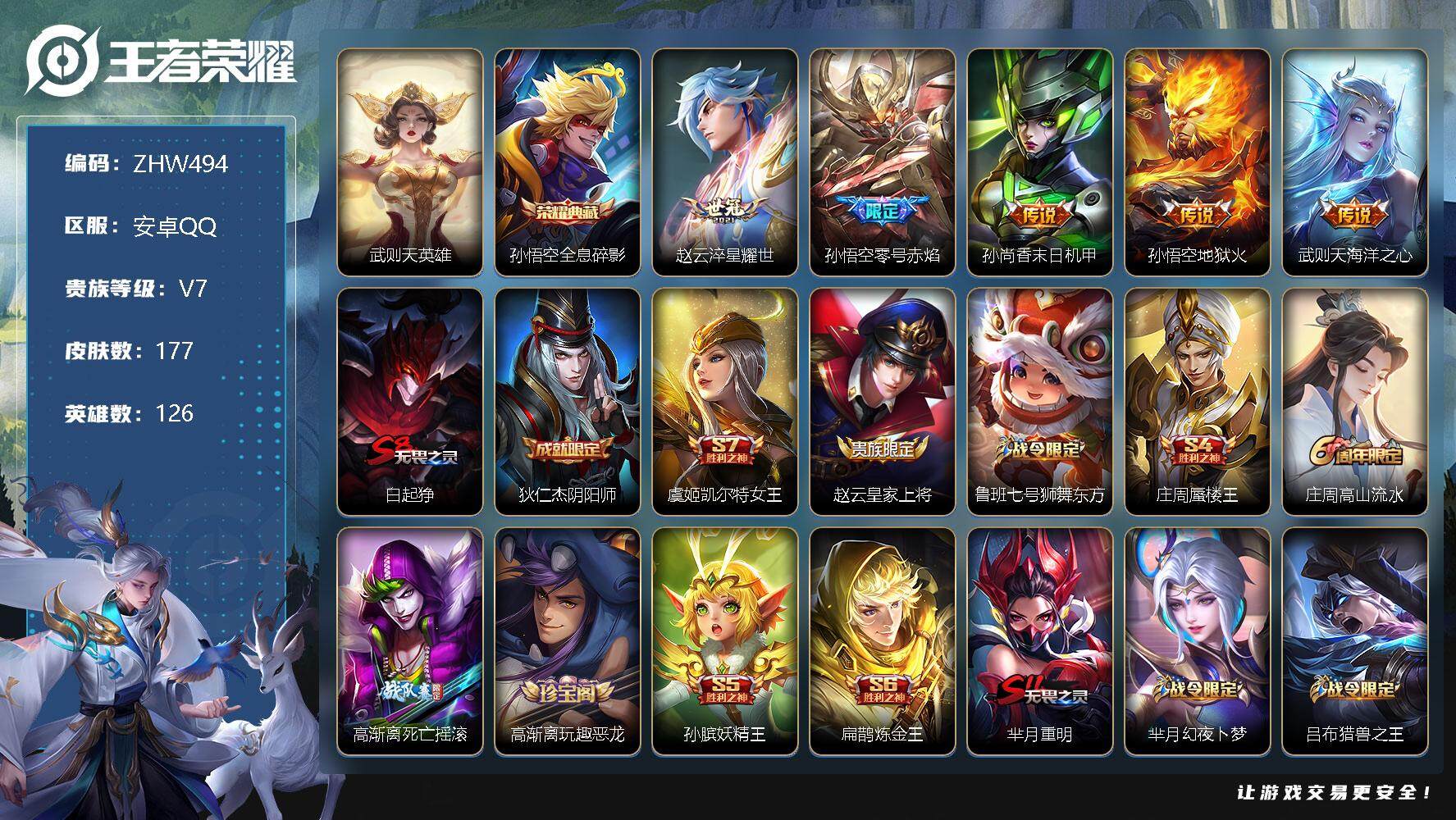 [12947596]安卓Q-V7-永恒钻石II段位-126英雄-177皮肤-1典藏-5传说-37史诗