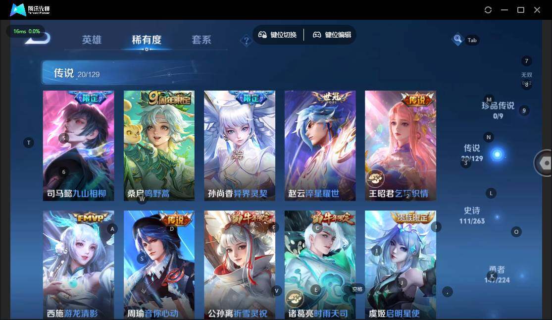- [12285486]V7 4传说 125英雄 242皮肤 可修改实名 优质装备:云鹰飞将(小将军),久胜战神,炽阳神光,一念神魔,涂山容容 珍宝阁皮:玩趣恶龙 限定皮:神威(电光马子),遇见飞天,高山流水,五谷丰年,梁祝,天狼狩猎者,天狼征服者,李小龙,猪悟能,美猴王,山海·玄木吟(马可年限) 史诗皮:龙之律动,石田雨龙,百相守梦-黄忠,谪仙醉月,东方月初,紫霞仙子,白龙吟,黄金分割率,千年之狐,永昼,冰冠公主,真我赫兹(百里守约),匿光侦查者,江河有灵,蒙恬荣光圣徽,魅语,电玩·爆裂旋风,无限星赏官,偶像歌手,龙骑士(小龙虾),末日机甲-吕布,时之恋人-孙尚香,乱世虎臣,节奏热浪,修罗,女仆咖啡,水果甜心,绅士熊喵,天才门将,星夜王子,功夫厨神,德古拉伯爵,暗隐猎兽者,鬼剑武藏,心灵战警,舞动绿茵,地狱岩魂,纤云弄巧,繁星吟游(呼啦呼啦),拒霜思,缤纷独角兽,乘风破浪,逐浪之夏,水晶猎龙者,曙光守护者,金属风暴,原初追逐者,圣诞恋歌,鹰眼统帅,魅力维加斯,黎明之约,无心,未来纪元-赵云