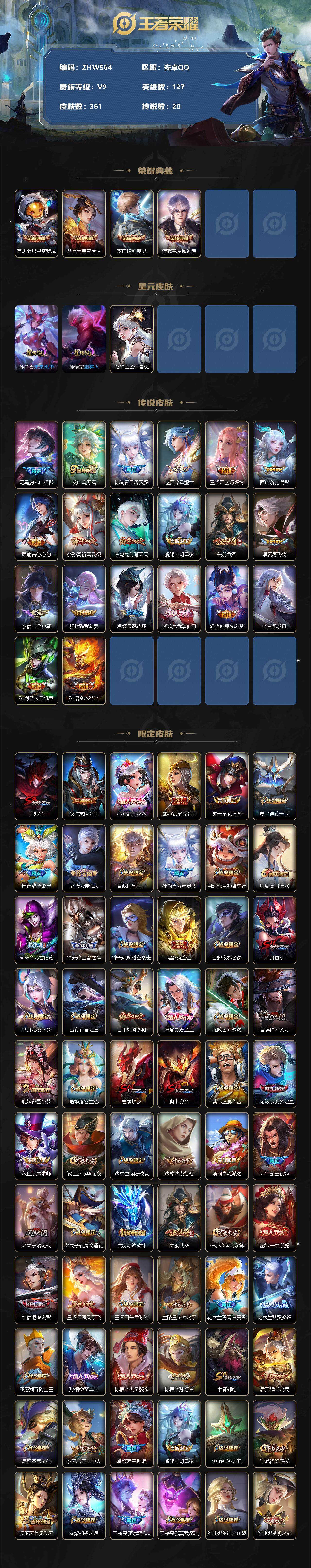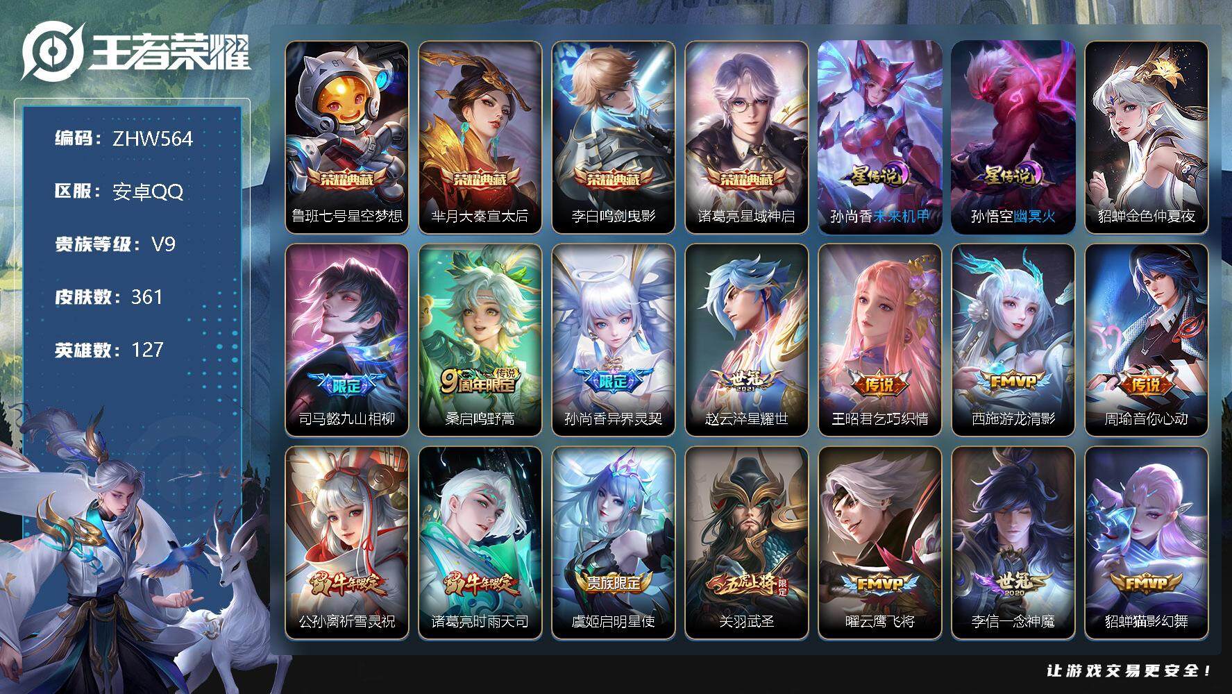 [12948447]【特价急出/详情看图】安卓Q-V9-至尊星耀III段位-127英雄-361皮肤-3星元-4典藏-20传说-111史诗