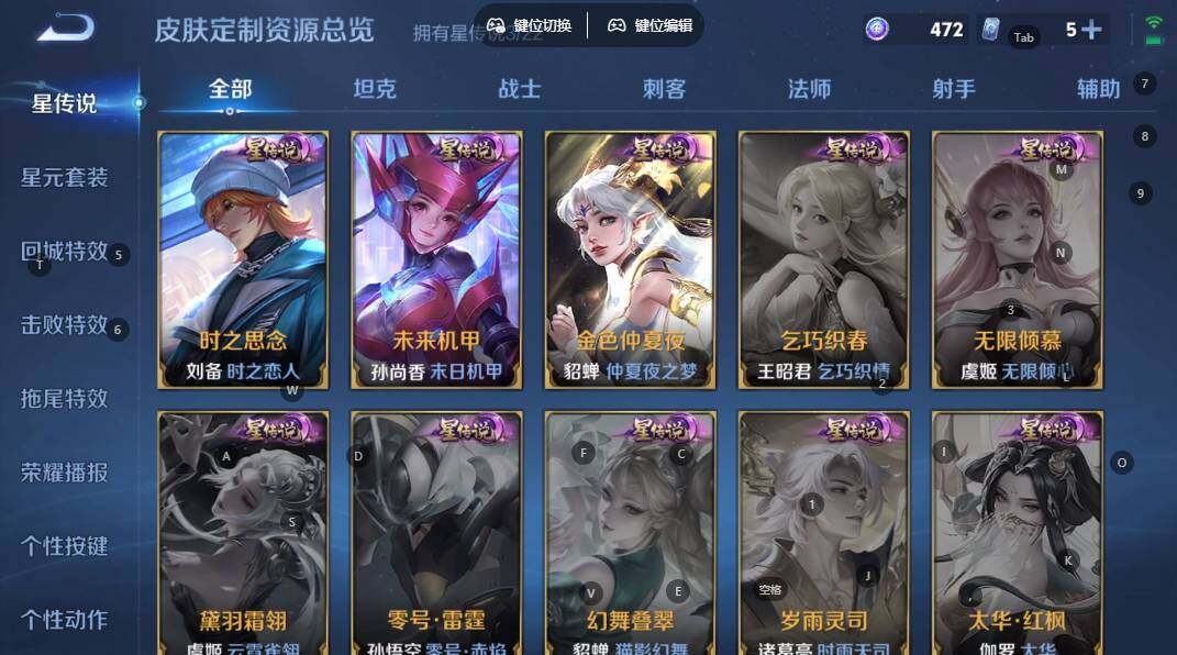 小乔青蛇,大乔白蛇,瑶遇见神鹿,娜可露露晚萤,伽罗箭羽风息,李元芳逐浪之夏,公孙离无限星赏官,大乔猫狗日记,孙策猫狗日记,阿轲节奏热浪,露娜紫霞仙子,诸葛亮黄金分割率,王昭君偶像歌手,项羽苍穹之光,孙尚香时之恋人,雅典娜冰冠公主,吕布末日机甲,嬴政摇滚巨星,白起星夜王子,安琪拉心灵骇客,刘邦德古拉伯爵,兰陵王暗隐猎兽者,曹操幽灵船长,宫本武藏鬼剑武藏,亚瑟心灵战警,钟馗乐园奇幻夜,杨戬天秀·启明,蔡文姬舞动绿茵,西施诗语江南,小乔缤纷独角兽,夏侯惇乘风破浪,花木兰水晶猎龙者,铠曙光守护者,百里玄策热力回旋,墨子金属风暴,百里玄策原初追逐者,吕布圣诞狂欢,貂蝉圣诞恋歌,百里守约特工魅影,嬴政暗夜贵公子,嫦娥拒霜思,李白千年之狐,澜赏金猎手,艾琳奇遇舞章,刘备百相守梦,关羽百相守梦,刘禅电玩·爆裂旋风,海月浮梦罗烟,镜真我赫兹,赵怀真鹤归松栖,莱西奥末日机甲,李元芳匿光侦查者,蒙犽百解令,高渐离燃音魔法,伽罗琥珀纪元,安琪拉乘龙·聚宝船,赵怀真器灵·浮梦炉