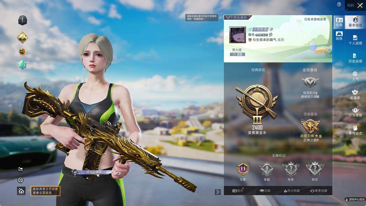 - [11767672]1粉装 3特效枪 1载具 5印记 可二次 可修改实名 安全保护中 优质装备:玛莎拉蒂Ghibli(蓝),M416五爪金龙,蝶舞迷情,Kar98K-巳巳如意 热门装扮:仓鼠灰灰,浪漫波比 稀有枪皮:DP-28-豹影疾电 六级特效枪:六级M416-五爪金龙 五级特效枪:五级Kar98K-巳巳如意,五级DP-28-豹影疾电 紫色装扮:SS31特训套装,SS5特训,冰原使者,,凛冬战士,北国孤狼,千禧之恋,SS33特训套装,青涩时光,SS20特训,飞驰魅影,音速流光,SS19特训,雪兔飞飞,瑞龙福将,团圆交子,异彩先驱,SS18特训,野性战魂,金鼠迎春,长空猛禽,雪山征服者,雪山精英,霓虹极客,缤纷果语,耀动青春,蓝彩潮人,蓝色运动,无面战甲,龙腾端午,骑行爱好者,魅力单车,黄色名流,黄色运动,柠萌假日,格斗先锋,沙漠兵团,海岛探路者,深蓝色名流,圣诞大吉,坚韧舞者,夏日音浪,夜莺强袭者,绮丽涂鸦,疯狂小兔子,白色伏地魔,破蛋小黄鸡,竞技勇士朋克,潮流先锋,炫蓝之夏,燃烧卡路里,特战装甲,鱼渊荷华,燕燕于飞,巳巳如意,竞技名士,浪漫天命,智谋强哥,炽焰拳师,格斗专家,SS6特训,SS7特训,拳皇97草薙京,幻世尖兵,维京奇缘,精密机核,火舞潮人,淡雅花蕊,太极红客,奇趣章鱼,玲珑飞花,SS8特训,大橘大利,星渊小夜曲,星影赞美诗,耀粉歌者,春日漫步,蓝冰羽,紫幽梦,SS32特训服(SS32特训套装),绯格组合,恋语绒绒,传奇侦探,奇趣企鹅,爆竹金鼠 优质战备:庄周梦蝶降落伞,恐龙拽拽降落伞,喜羊羊与灰太狼降落伞,至尊龙雀降落伞,银河战甲降落伞,雪国幻梦降落伞,春暖花开降落伞,飞行器-春暖花开