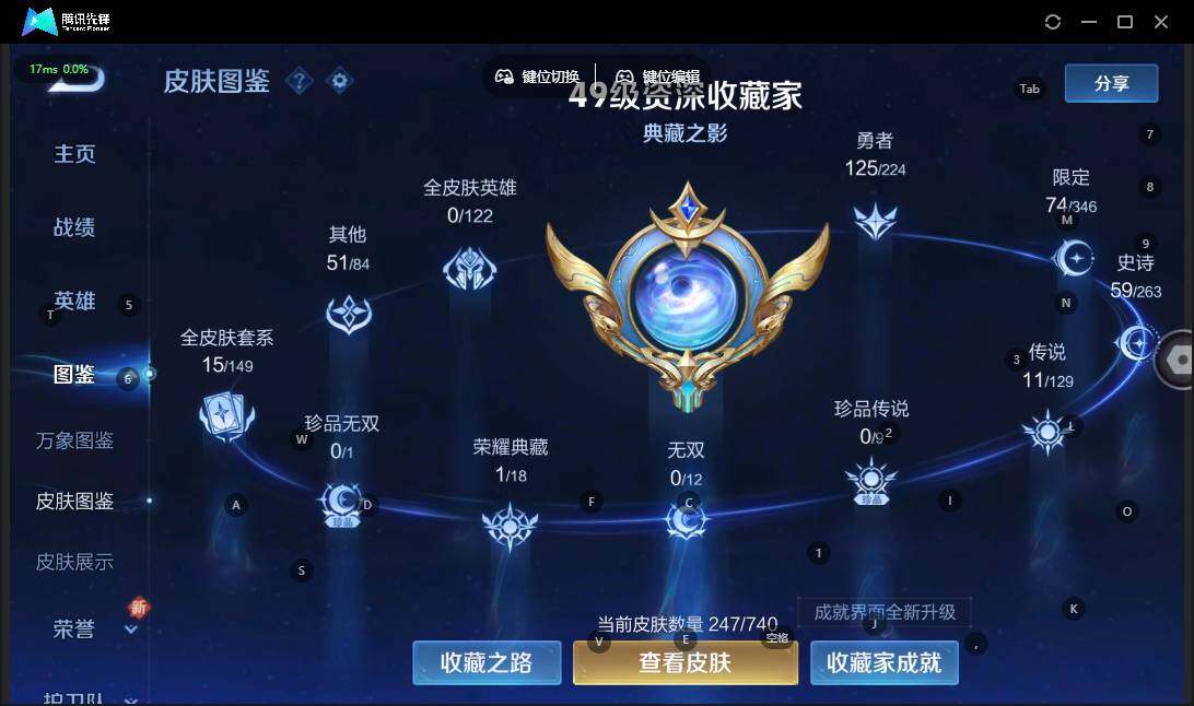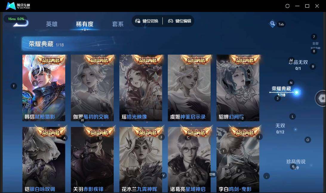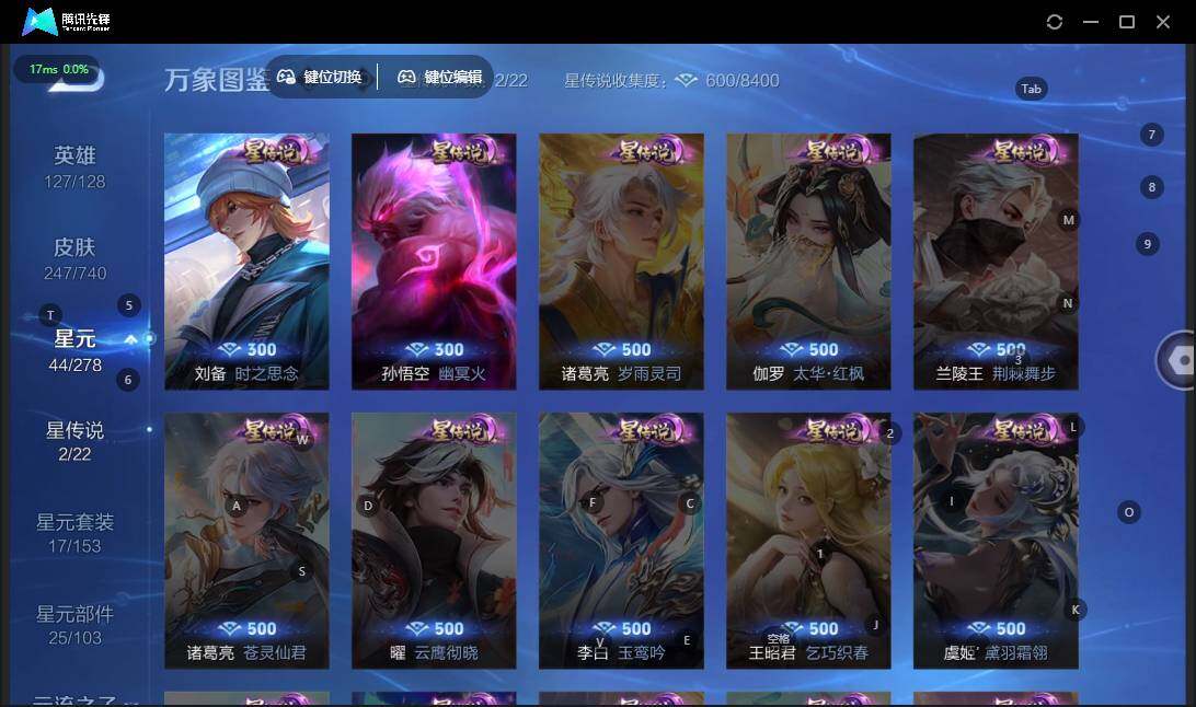 - PX_2108032-Q/至尊星耀/176皮肤/123英雄/1典藏/0珍品无双/0无双/3珍品传说/9传说/56史诗/7稀有英雄 【3 珍品传说】怪盗基德 马可波罗,时之奇旅 孙策,器灵·落星盏 嫦娥, 【1 典藏皮肤】鸣剑·曳影 李白, 【9 传说皮肤】逐花归海 澜,无双飞将 马超,齐天大圣 孙悟空,霜月吟 露娜,山海·炽霜斩 李信,幻光神枪 云缨,愿照·岁时盈 虞姬,愿照·千秋盛 女娲,鸣野蒿