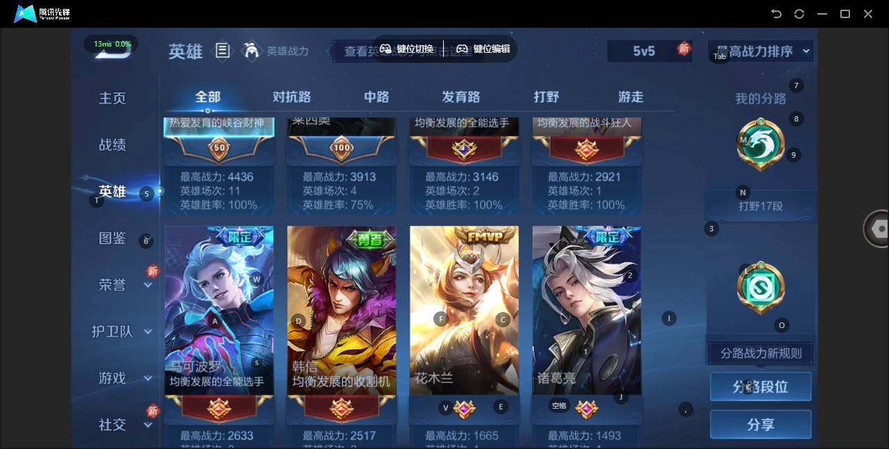 [12949679]【特价急出/详情看图】安卓Q-V5-尊贵铂金I段位-123英雄-249皮肤-1典藏-25传说-62史诗