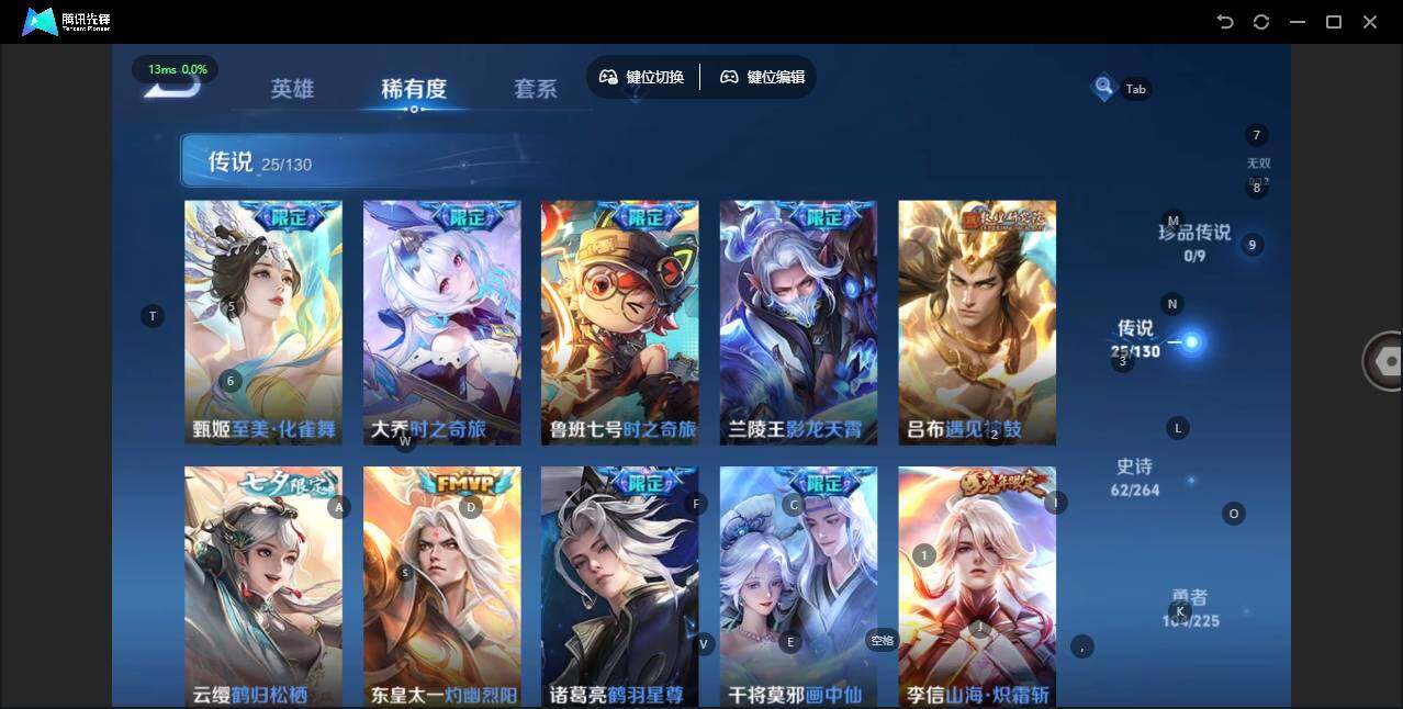 - [11297475]V7 1典藏 11传说 124英雄 241皮肤 可修改实名 优质装备:弑枪猎影(韩信典藏),黄金狮子座,云鹰飞将(小将军),久胜战神,炽阳神光,无双飞将,碎云,遇见神鼓 珍宝阁皮:妄想食味 限定皮:愿照·山河定(司空震年限),鸣野蒿,至尊宝,凤求凰(白切鸡),飞衡(韩信年限),五谷丰年,武圣,游园惊梦,天狼狩猎者,李小龙,圣诞老人,默契交锋-花木兰,真爱至上,一生所爱 史诗皮:器灵·浮梦炉,绮世丹青,化蝶舞,龙之律动,破空之剑,蒙犽顽岩魄,怒海争锋,决胜骁骑,蔬乡物语(鲁班七号),紫霞仙子,电玩小子(小书包),特工魅影,无限星赏官,冰冠公主,节奏热浪,修罗,摇滚巨星,水果甜心,天才门将,星夜王子,德古拉伯爵,暗隐猎兽者,鬼剑武藏,纤云弄巧,繁星吟游(呼啦呼啦),乘风破浪,逐浪之夏,月团寄思,水晶猎龙者,曙光守护者,金属风暴,鹰眼统帅,魅力维加斯,赏金猎手,未来纪元-赵云