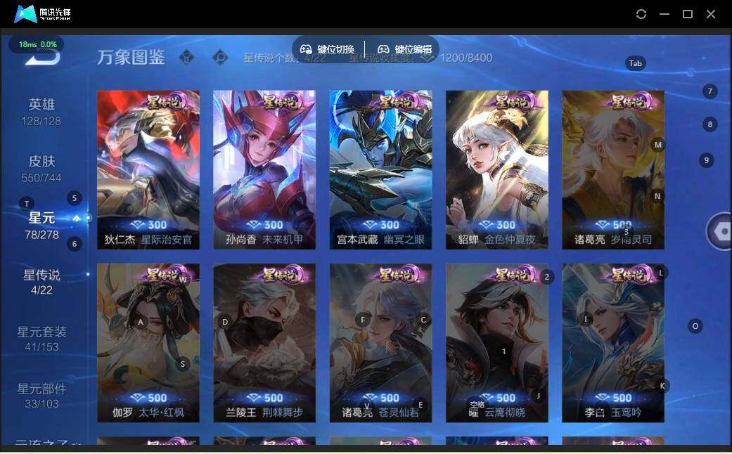 - [12203908]V5 103英雄 65皮肤 可修改实名 限定皮:至尊宝,遇见飞天,游园惊梦,梁祝,李小龙,引擎之心 史诗皮:猫狗日记-孙策,修罗,女仆咖啡,水果甜心,金属风暴,鹰眼统帅