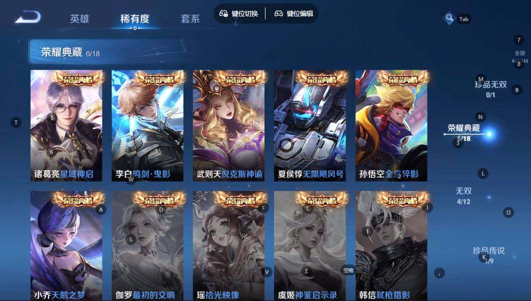 【荣耀典藏】:武则天英雄,孙悟空全息碎影,武则天倪克斯神谕,夏侯惇无限飓风号,小乔天鹅之梦,李白鸣剑曳影,诸葛亮星域神启