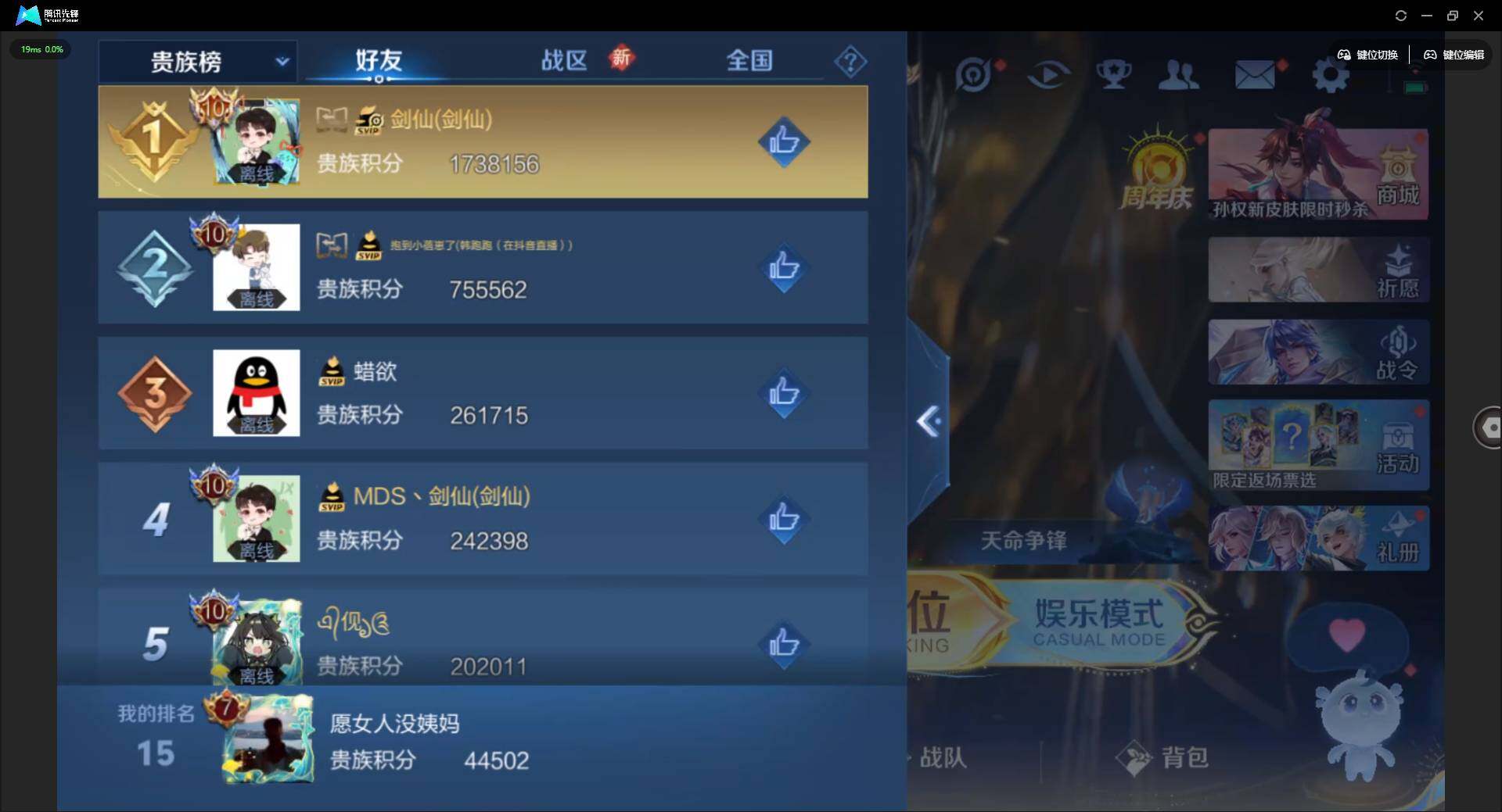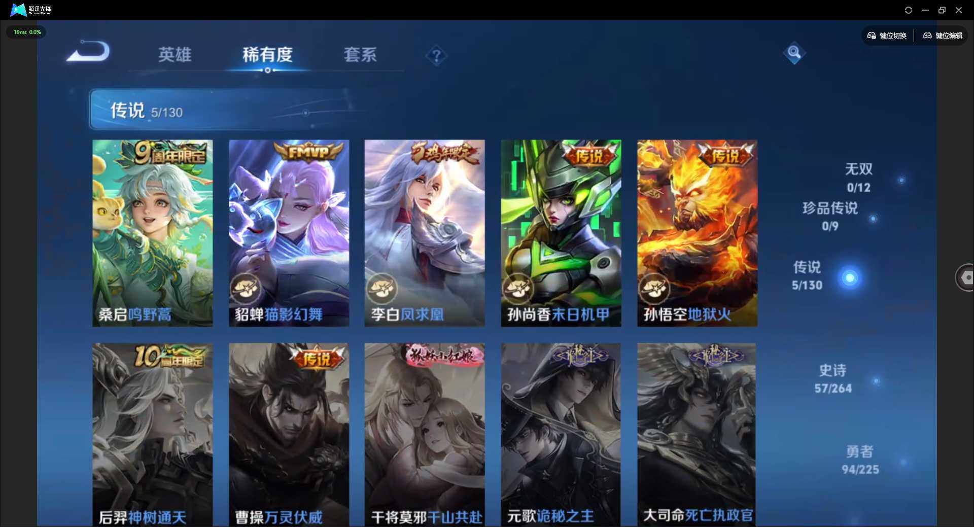 [12948962]安卓Q-V7-永恒钻石IV段位-126英雄-213皮肤-5传说-57史诗-1颗荣耀水晶
