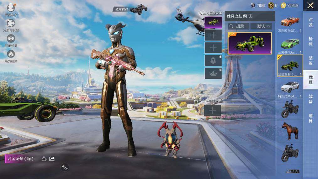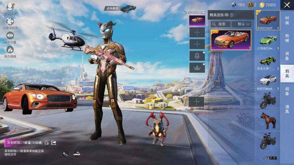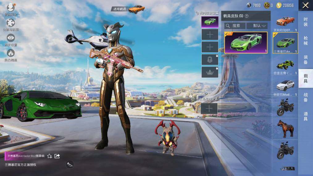 【粉色载具】:特斯拉Model X(珍珠白),兰博基尼Aventador SVJ(翡翠绿),玛莎拉蒂Ghibli(粉),宾利欧陆GT敞篷(火焰橘),合金龙骨(绿),空客H135-蔚蓝之翼
