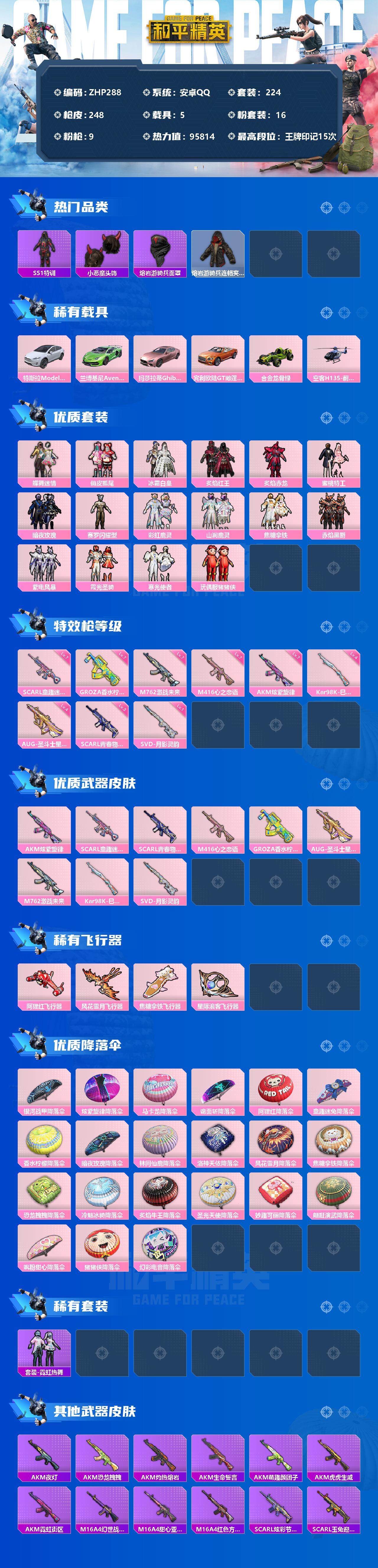 [12949910]【特价!急出!】安卓 手Q-16粉装-9特效枪-5载具-4粉色飞行器-95814热力值-15王牌印记-224套装-248枪皮