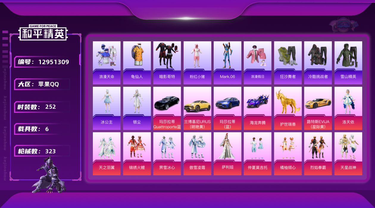 [12951309]素材身法号/绝世印记2/地铁满天赋/M416-至情至圣(九级)【特价急出/详情看图】:苹果 手Q-12粉装-14特效枪-6载具-5粉色飞行器-12.4w热力值-20王牌印记-252套装-323枪皮【热门品类】:粉装-梦幻火箭,绝对防御上衣,套装-浪漫天命,套装-小丑鱼,套装-奇异狩猎者,角色-军刀雅典娜,套装-龟仙人,套装-暗影哥特,套装-浪漫波比,套装-粉红小猪,角色-Mark.06【粉色载具】:兰博基尼URUS(明艳黄),路特斯EVIJA(星际黄),玛莎拉蒂Quattroporte(夜幕蓝),玛莎拉蒂Ghibli(蓝),海龙奔腾,护世瑞兽【粉色套装】:粉装-梦幻火箭,粉装-锦绣火鲤,粉装-银刃赛罗,粉装-烈焰拳霸,角色-洛天依,粉装-天之羽翼,粉装-橘柚倾心,粉装-傲雪凌霜,粉装-霁雪冰心,粉装-仲夏莫吉托,粉装-天星战神,角色-萨利娅【粉色枪皮等级】:AKM-百合蜜语(七级),SCAR-L-锦绣绵绵(五级),M416-五爪金龙(五级),M416-至情至圣(九级),M416-电玩时刻(五级),GROZA-镜光银凌(五级),AUG-星之彼岸(七级),ARX-无垠阁(七级),UMP45-量子极限(五级),Kar98K-伏魔团(四级),Kar98K-巳巳如意(五级),M249-绒雪飘舞(七级),DP-28-豹影疾电(五级),MG3-洛神天依(五级)【粉色飞行器】:心之恋语飞行翼,王牌四分卫飞行器,星之彼岸飞行器,万象金身飞行器
