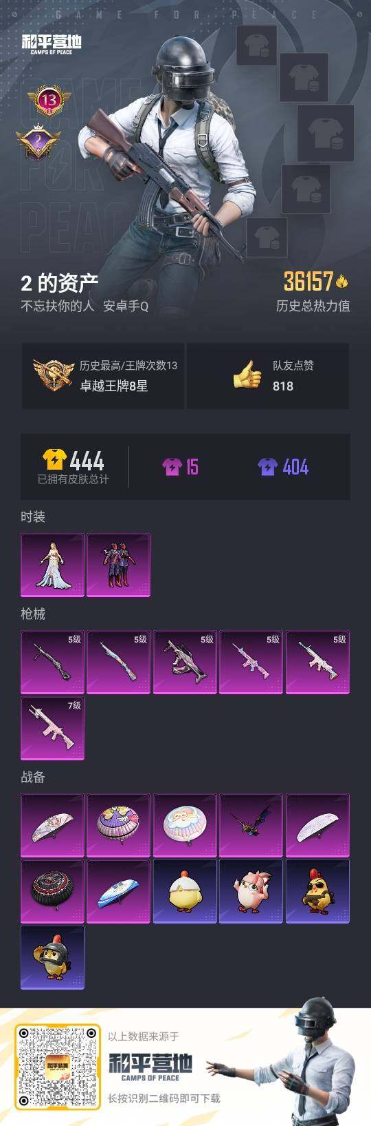 - PX_2095668- 安卓手Q-14王牌印记-4粉装-5特效枪-1载具-56955热力值-146套装-197枪皮-4卓越印记-2传奇印记 【4粉装】,第五大道,洛天依,桃粉嫣然,绯穹魔姬 【5特效枪】AKM-绿萝繁花-5级 SCAR-L-锦绣绵绵-5级 M416-风花雪月-5级 Kar98K-巳巳如意-5级 MK12-雪月幻音-1级 【2稀有紫装】,Mark.06,龟仙人, 【1稀有载具】,保