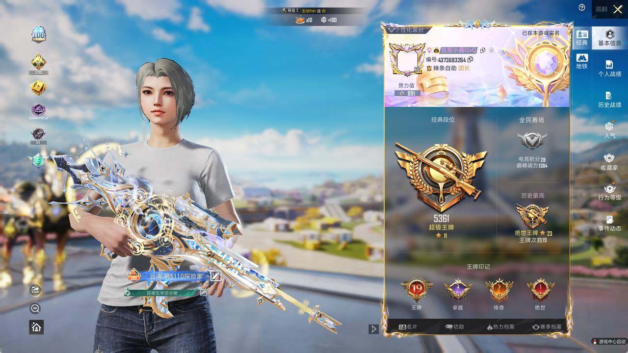 - PX_2091134-实名: 可修改 贵族等级: V4 英雄数: 44 皮肤数: 23 荣耀水晶: 弑枪猎影