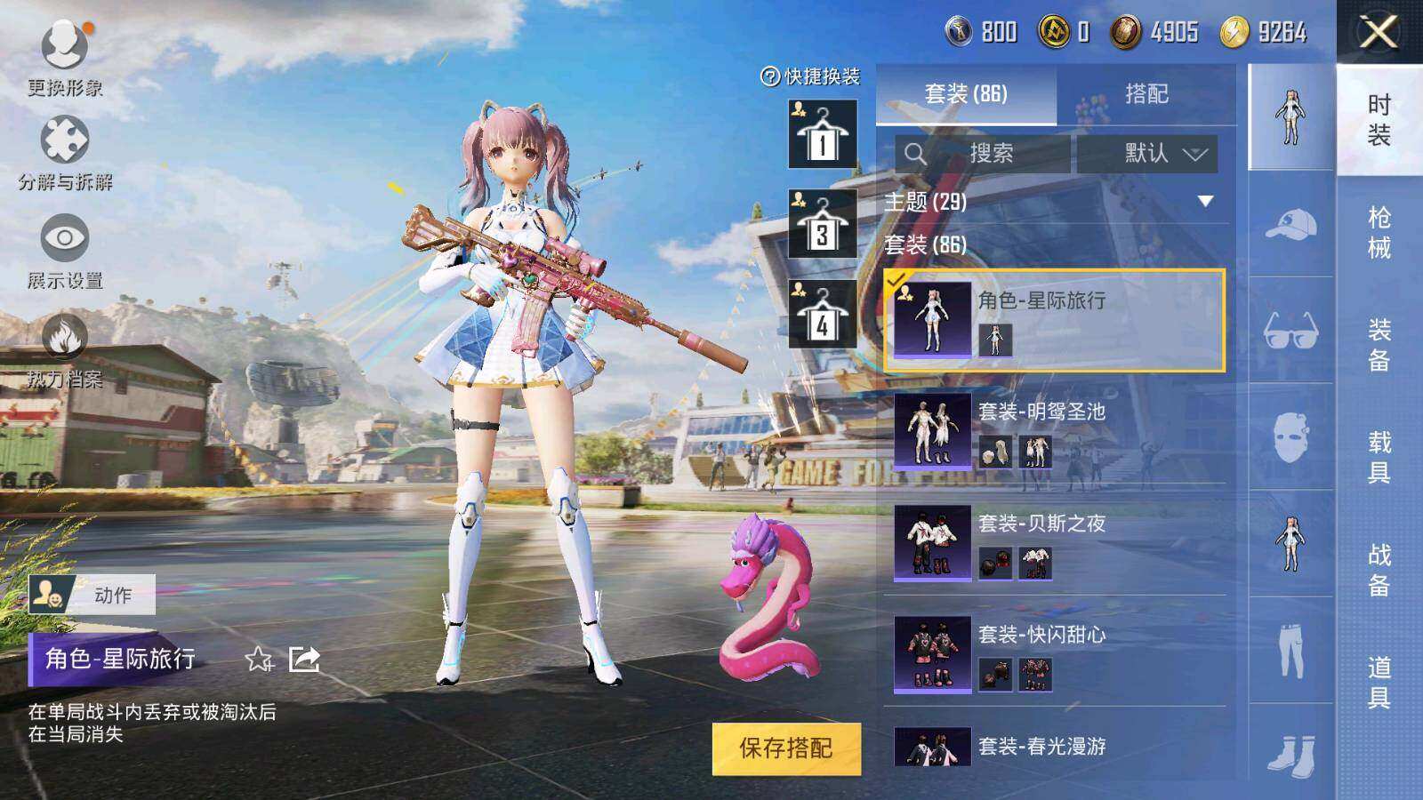 【粉色套装】:粉装-天幕蝎影,粉装-勇猛狮王,粉装-天衡星秤,角色-宙之时溯,角色-星云暗核,粉装-傲傲奶龙,角色-圣堂之誓,角色-烟云彩露